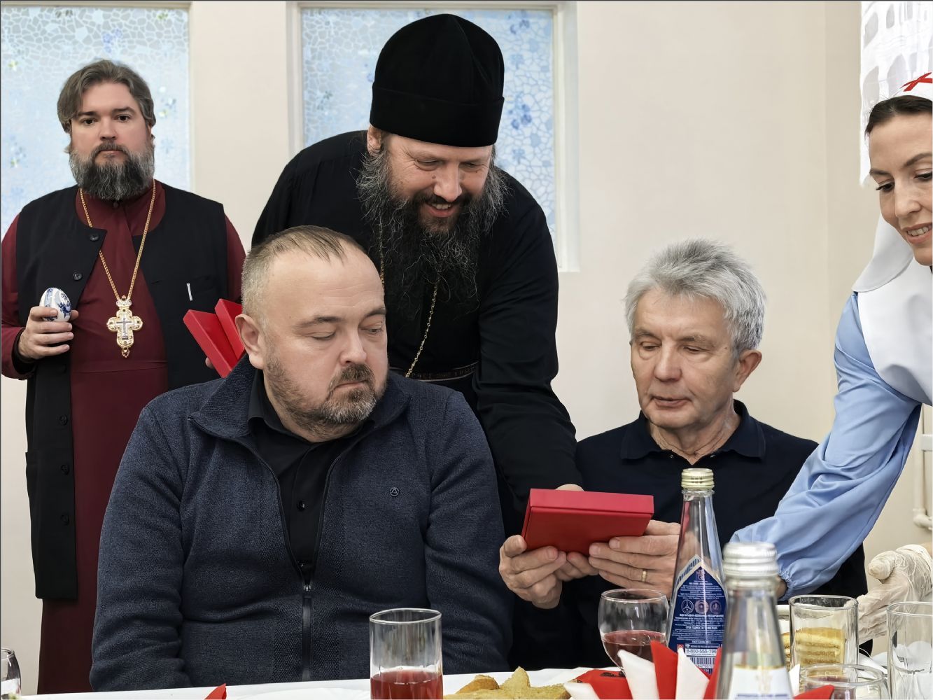 Руководитель отдела по канонизации святых Набережночелнинской епархии иерей Дмитрий Русин представил архиерейский хор Набережночелнинской епархии под управлением Натальи Гладышевой. Хор во время трапезы исполнил пасхальные песнопения.