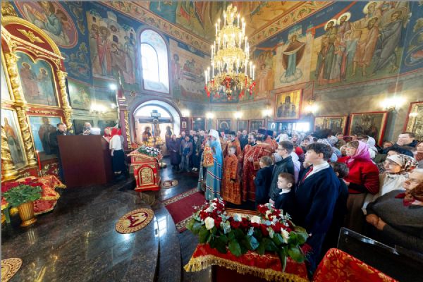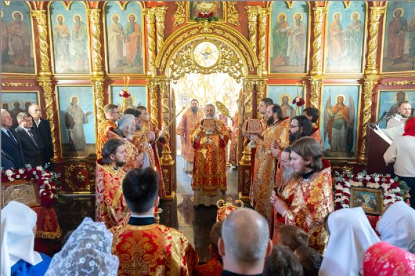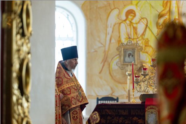 На мирной и сугубой ектениях были вознесены молитвы о Российском воинстве и о мире. Часть молитвословий возносились на кряшенском языке. По запричастном стихе проповедь произнёс игумен Никодим (Шушмарченко).
