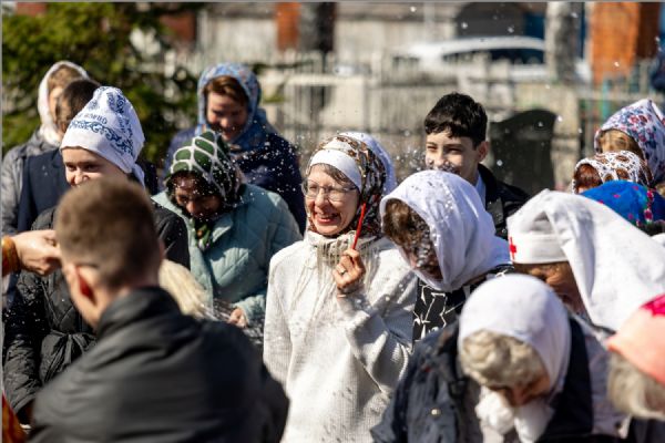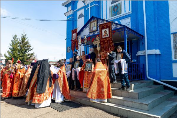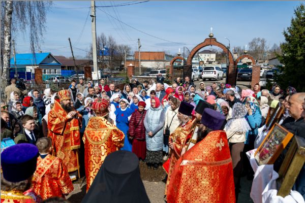 В завершение богослужения духовенство и миряне совершили крестный ход вокруг храма.