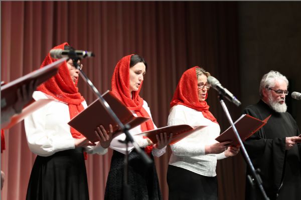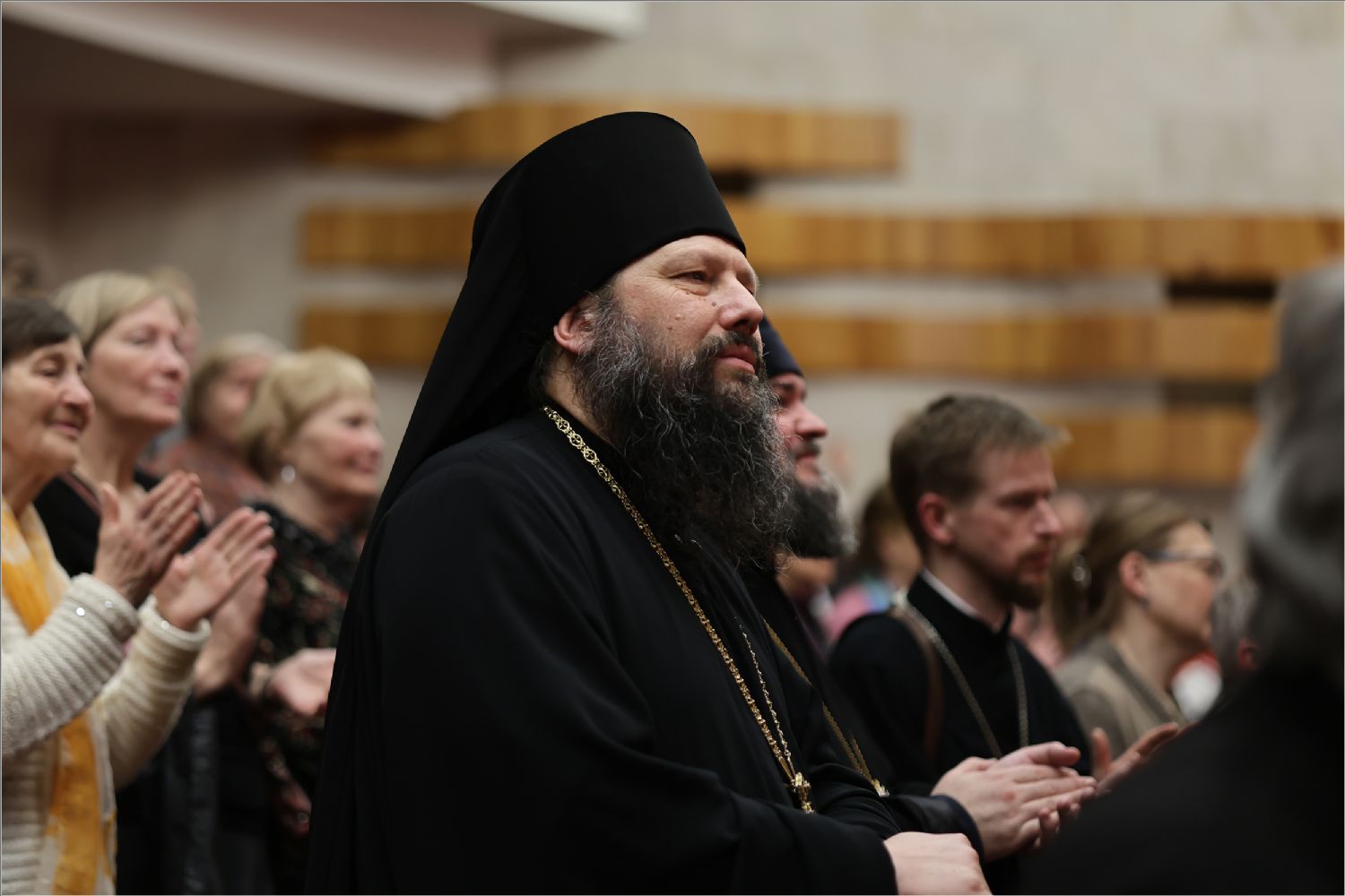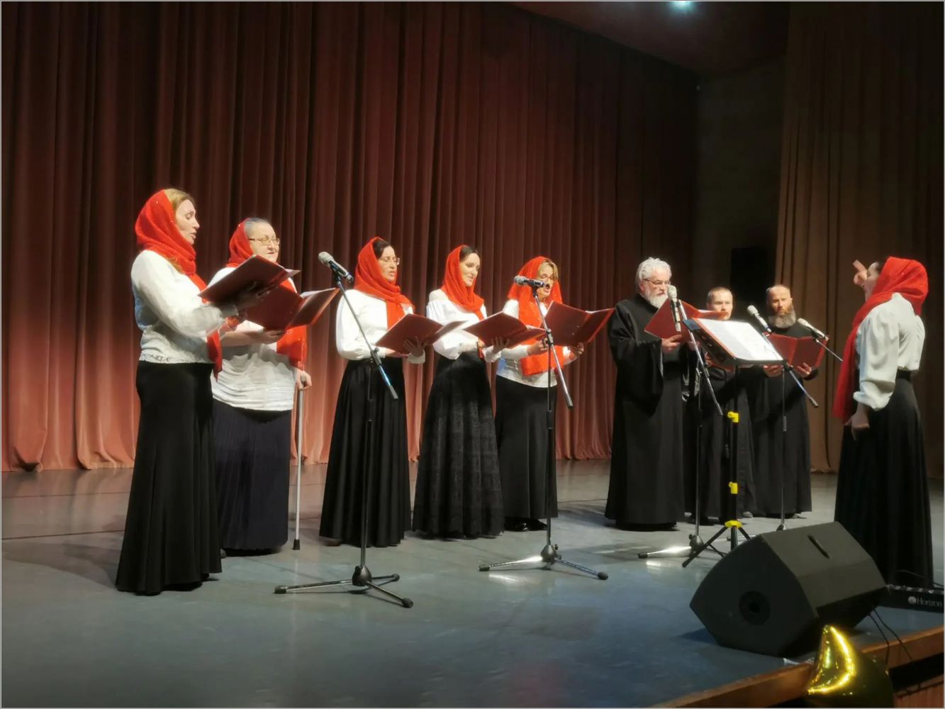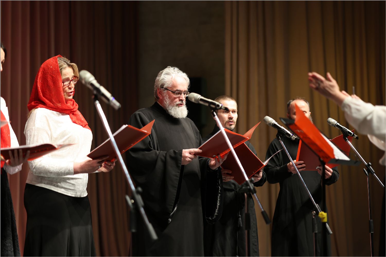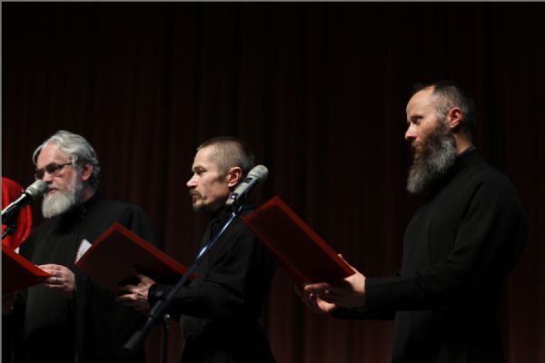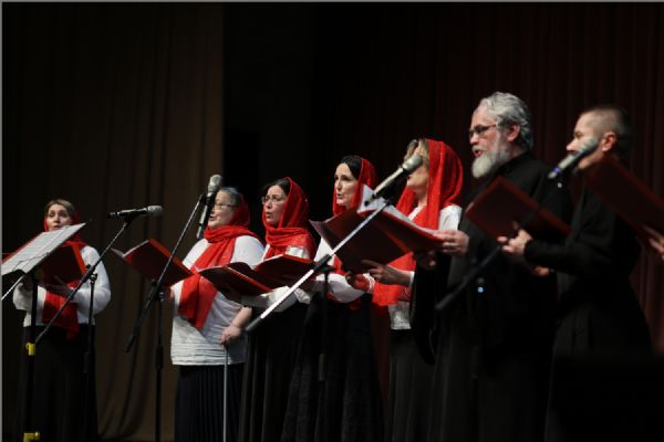 Начался концерт с тропаря праздника в исполнении архиерейского хора Свято-Вознесенского кафедрального собора под руководством регента Натальи Гладышевой. Затем хор исполнил Пасхальный антифон «Да воскреснет Бог».