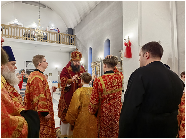 Также архипастырь поздравил просфорницу храма Татьяну Николаевну с днём рождения — прихожане и духовенство пожелали ей крепкого здоровья, помощи Божией и многих лет жизни в служении Церкви, а архиерей вручил ей богослужебную просфору.