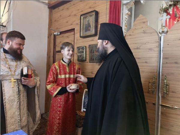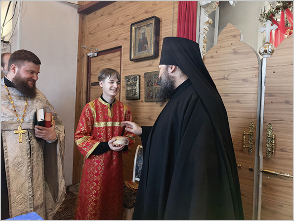 Владыка Гавриил поздравил иподиакона Никодима с днем памяти праведного Никодима и вручил ему богослужебную просфору.