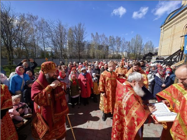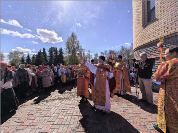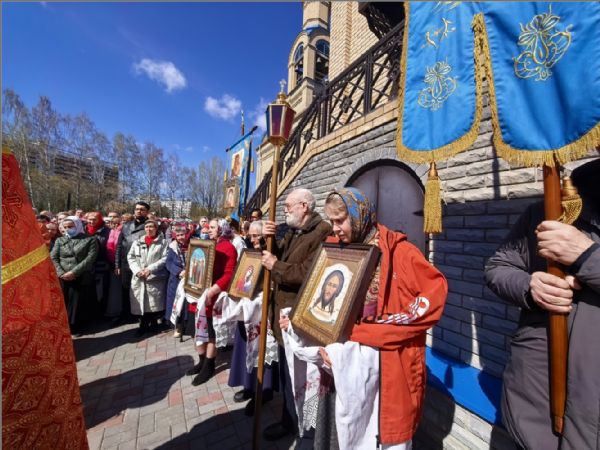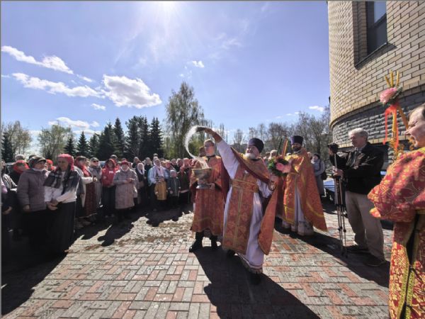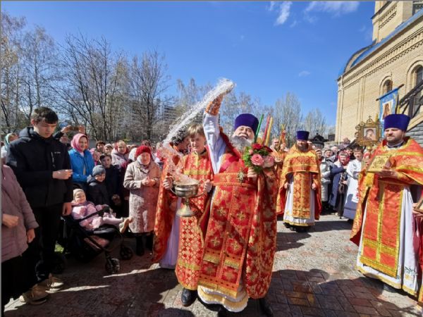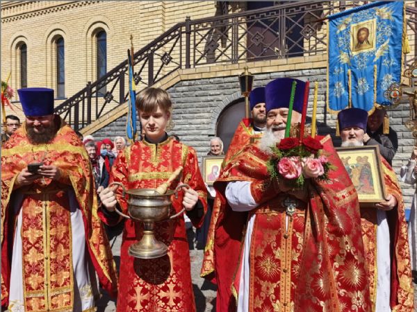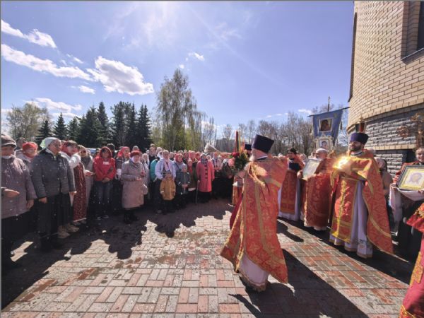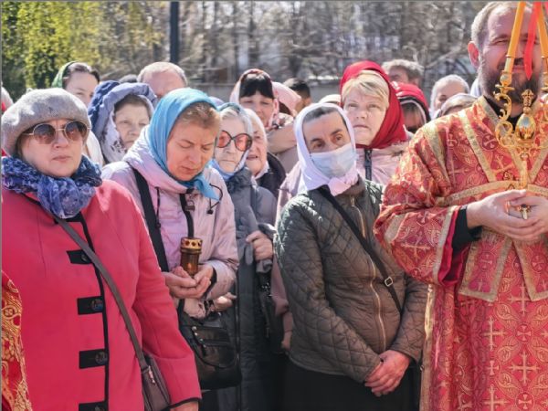 После службы вокруг храма был совершен крестный ход. Крестные хода будут совершаться в храмах епархии по воскресным дням до отдания Пасхи.