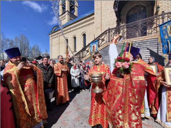 «От всего сердца поздравляю вас с этим светлым праздником! Перед пасхальной службой мы совершаем крестный ход: двери храма закрываются изнутри, а мы идём, спешим встречать Пасху. Мы начинаем празднование у закрытого храма — и лишь когда прозвучат первые возгласы «Христос воскресе!», двери открываются. Тогда мы входим в храм, полные радости и ликования.