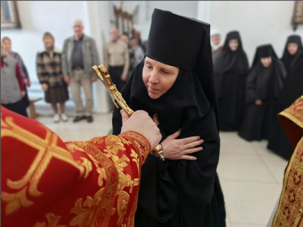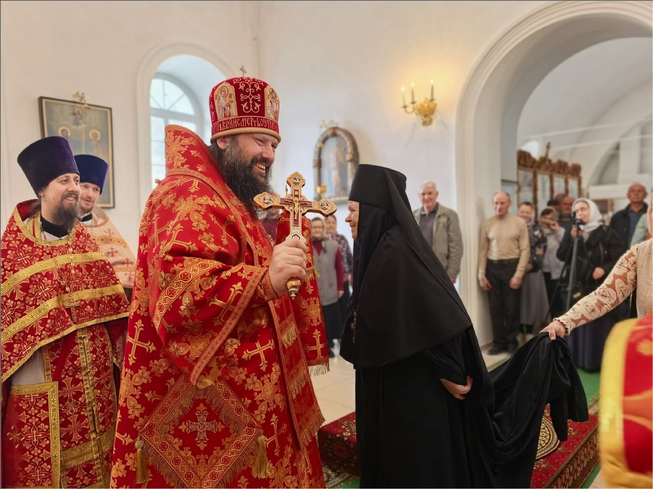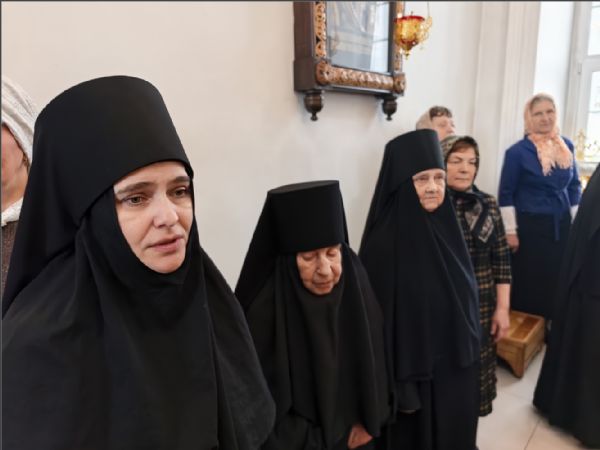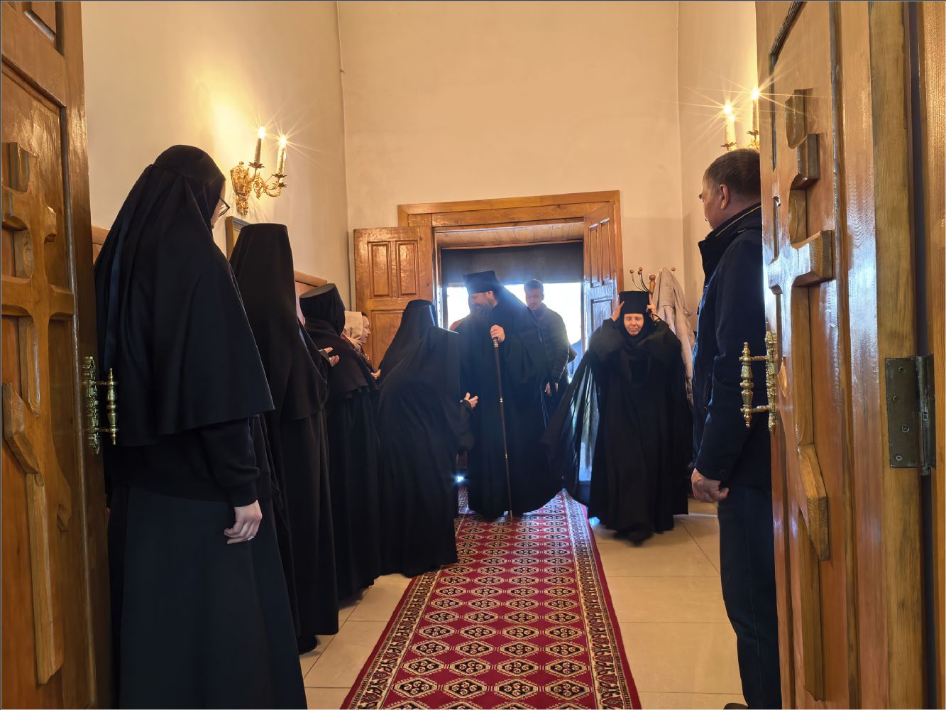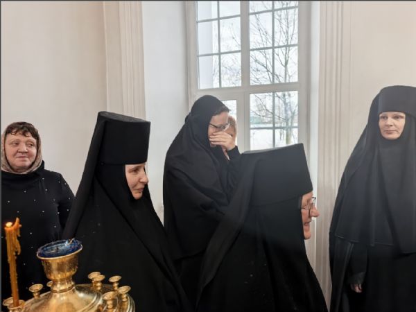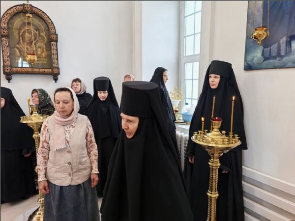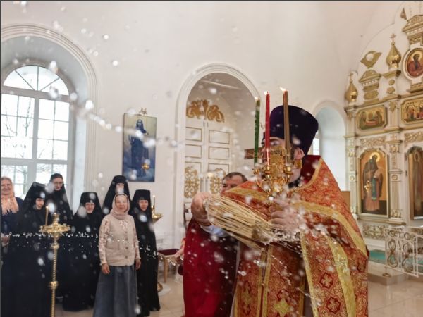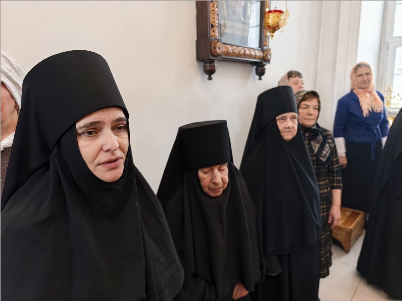 «Дорогие сёстры, прежде всего — дорогая матушка, сёстры обители, наши труженики и все, кто любит Господа и служит Ему. Сегодня мы собрались в этом тихом, поистине отшельническом скиту — месте, где особенно ощущается дух уединения и молитвы. И весьма уместно, что именно сегодня, в день памяти преподобных Зосимы Соловецкого и Александра Свирского, мы совершаем здесь богослужение. Это даёт нам возможность хоть немного почувствовать себя на месте этих великих подвижников, проникнуться их духовным опытом.