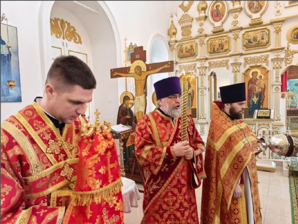На мирной и сугубой ектениях были вознесены молитвы о Российском воинстве и о мире. Проповедь по запричастном стихе произнес иерей Артемий Танаев.