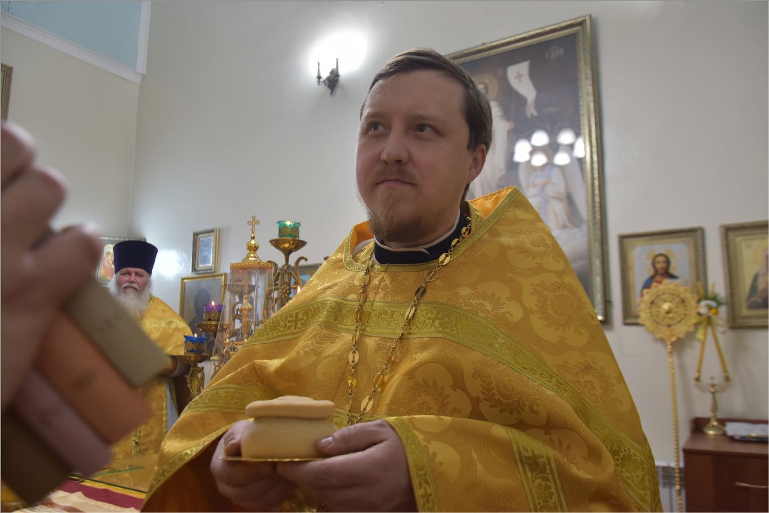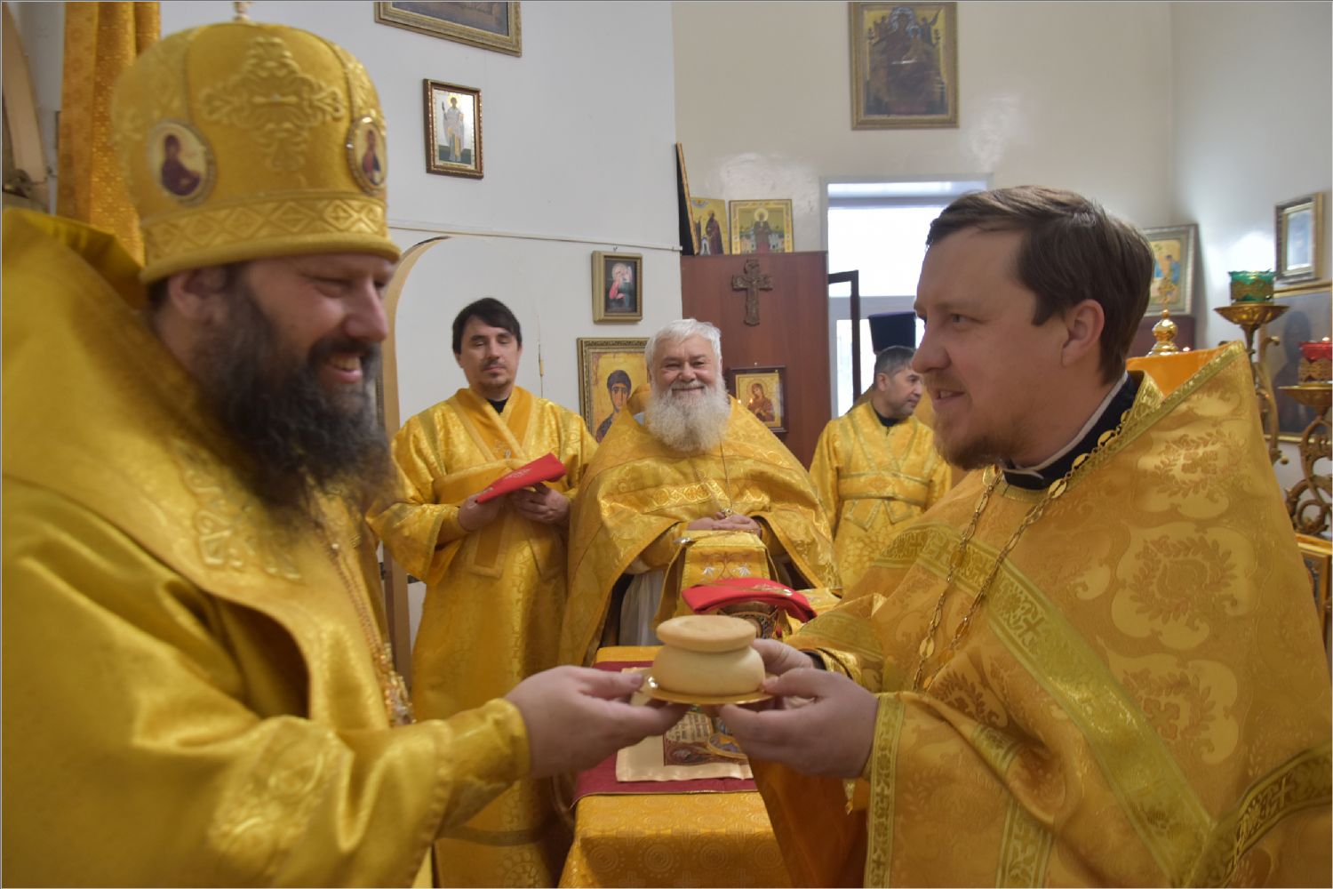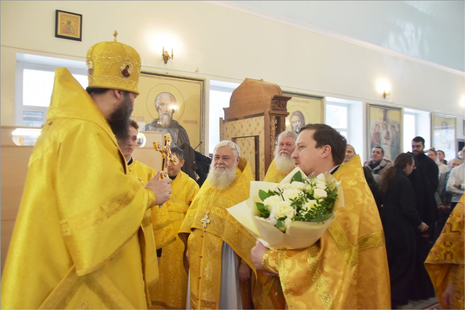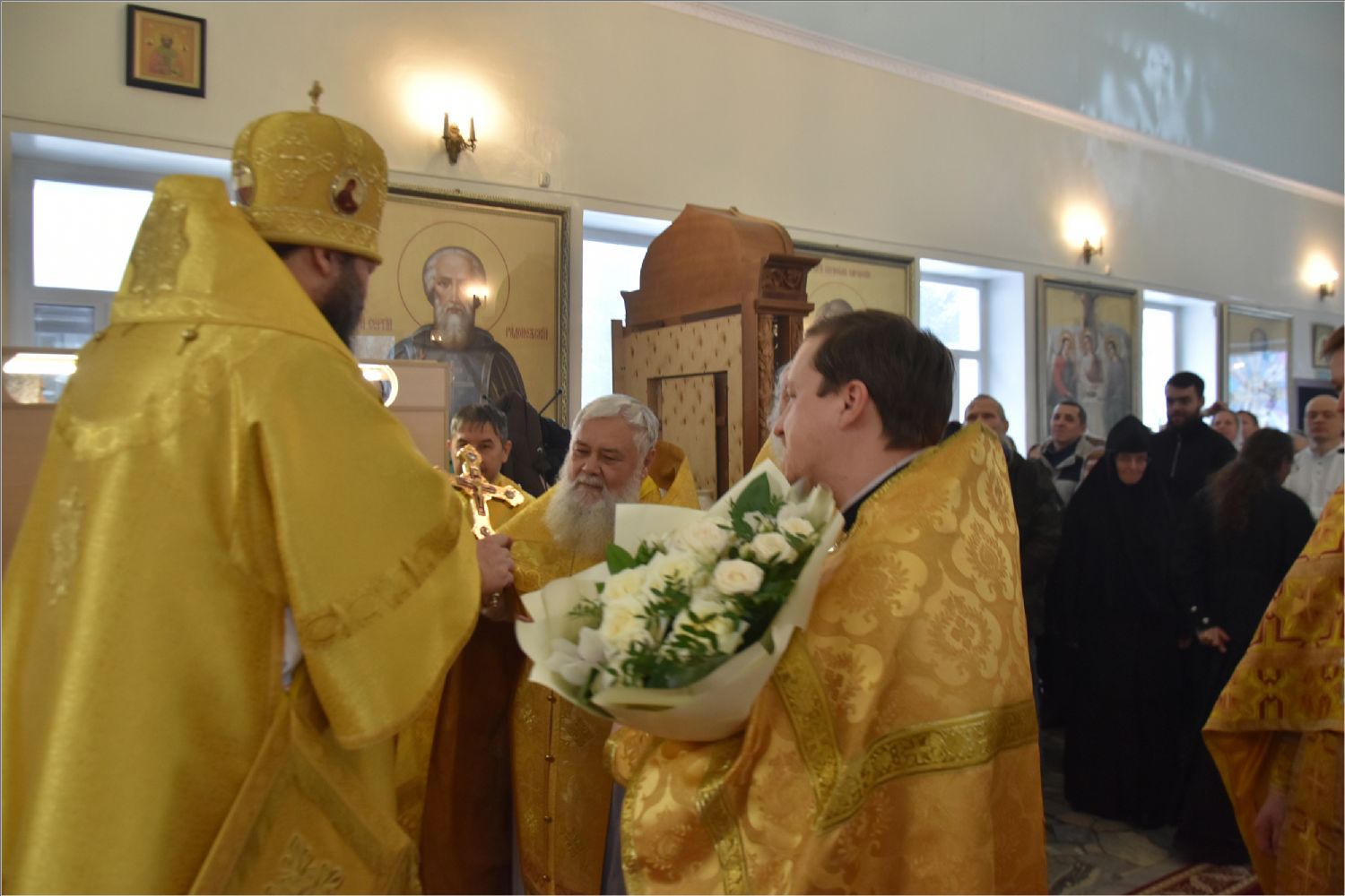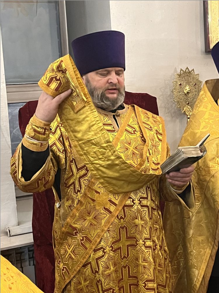 После богослужения архипастырь поздравил с днем рождения протоиерея Андрея Лосыка