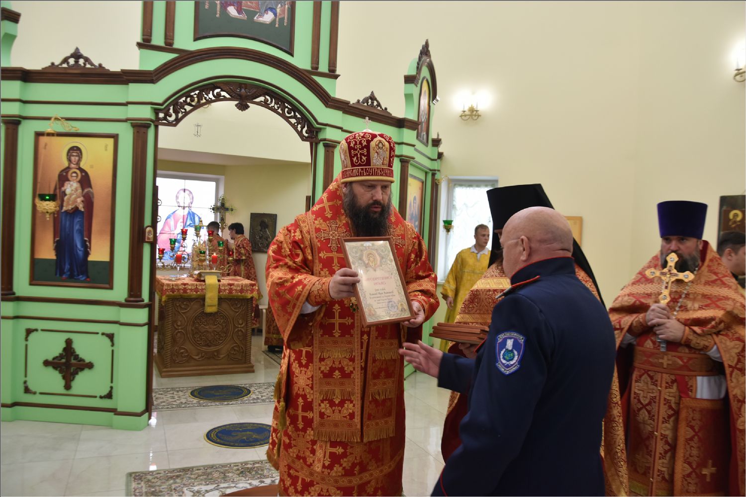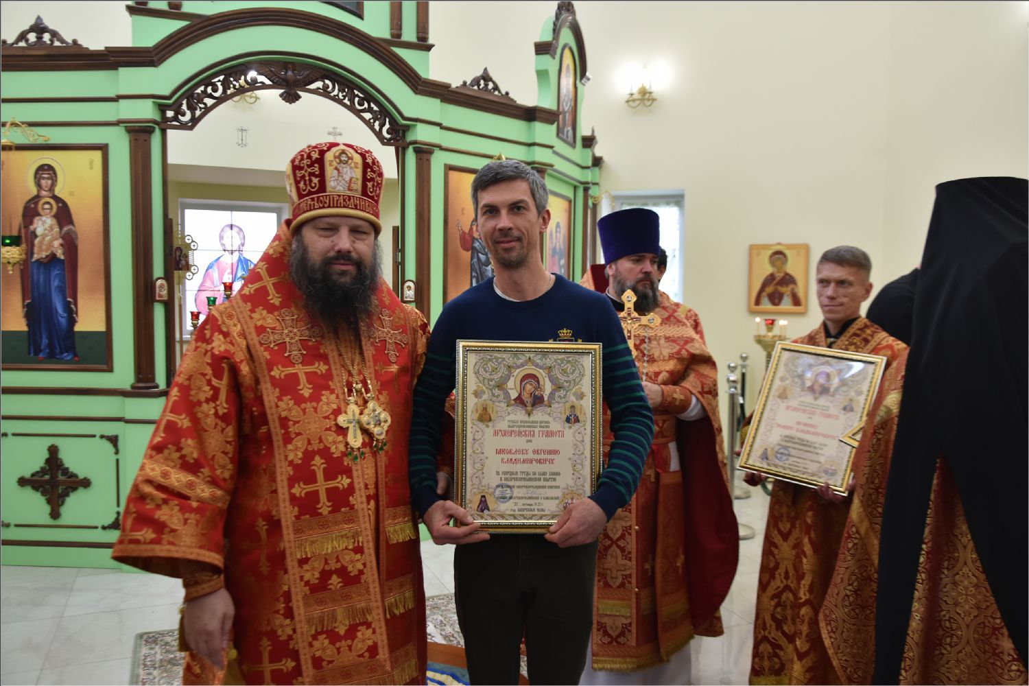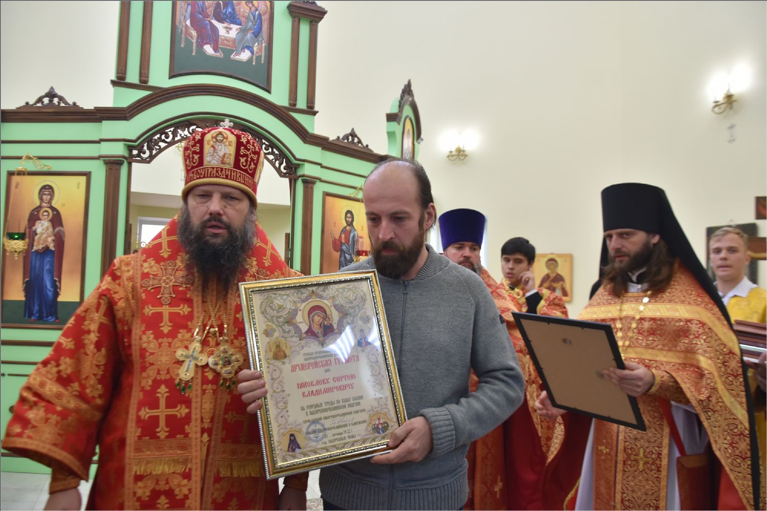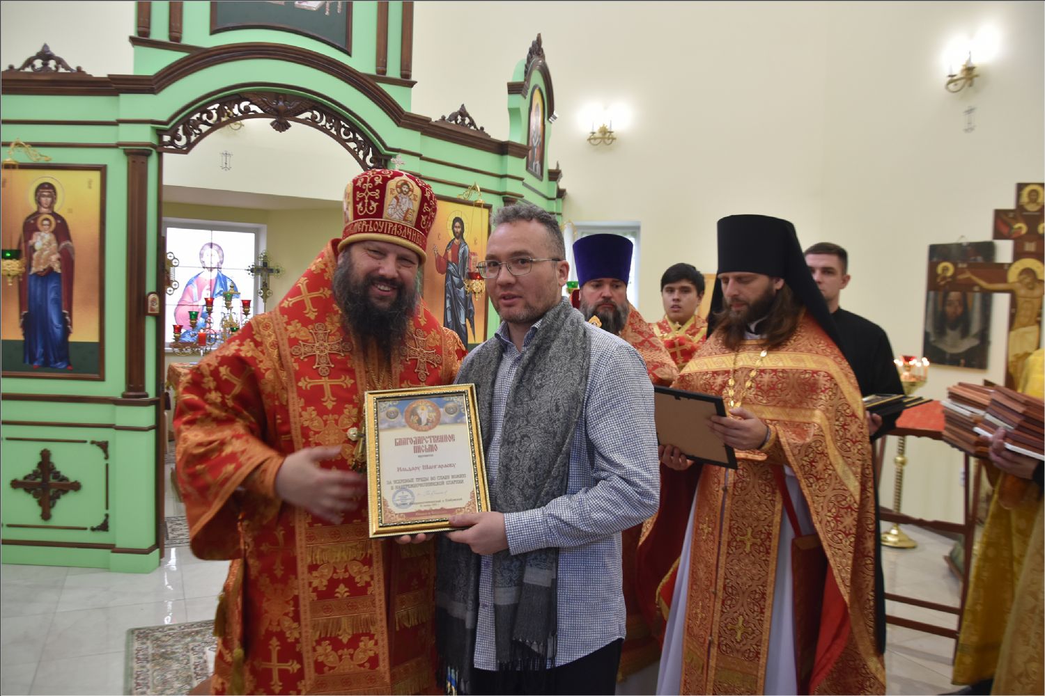 После богослужения архипастырь наградил активных прихожан и освятил помещения духовно-просветительского центра