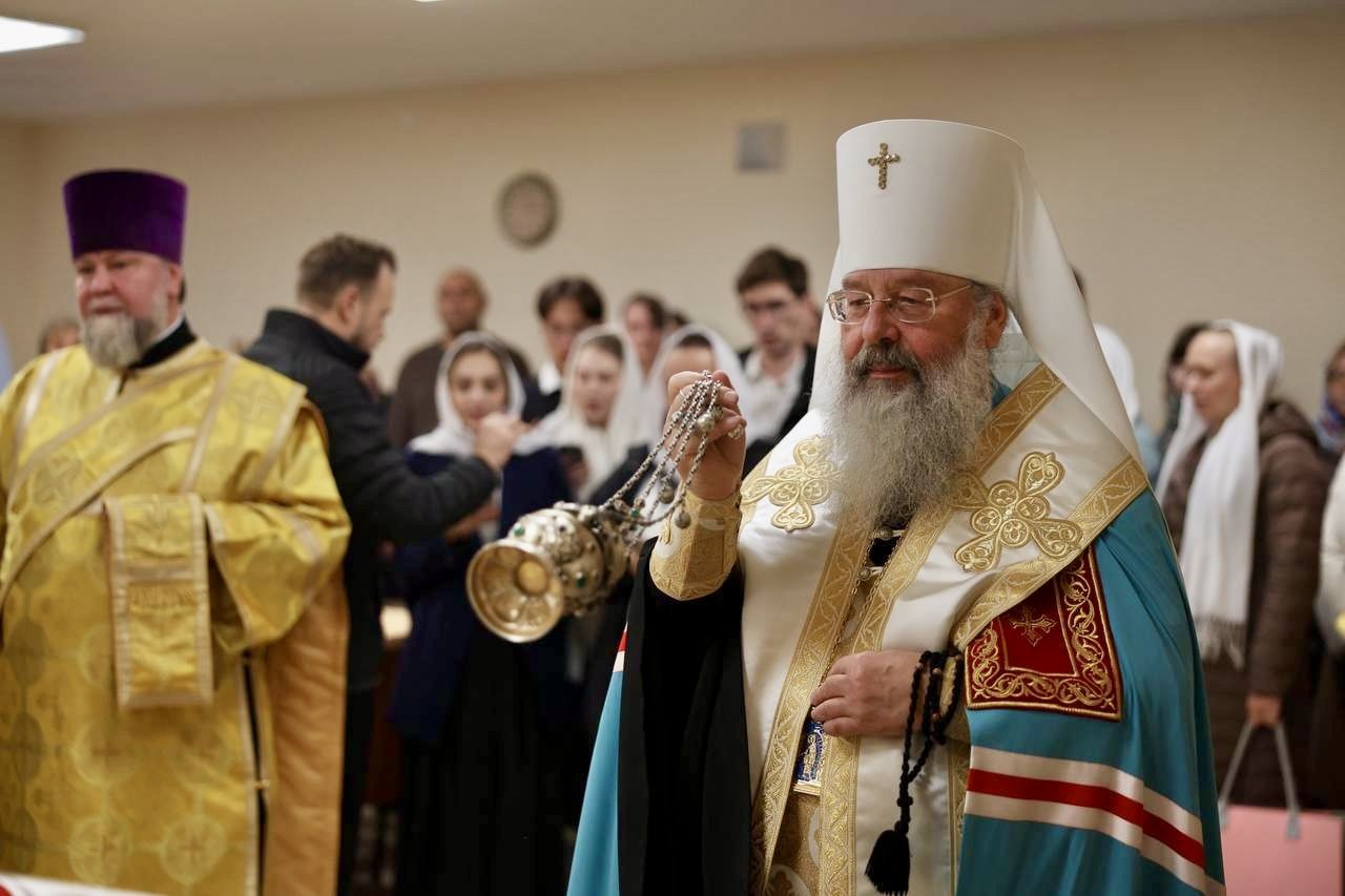В завершение молебного пения архипастырь окропил помещение святой водой. Затем глава Татарстанской митрополии совершил всенощное бдение.