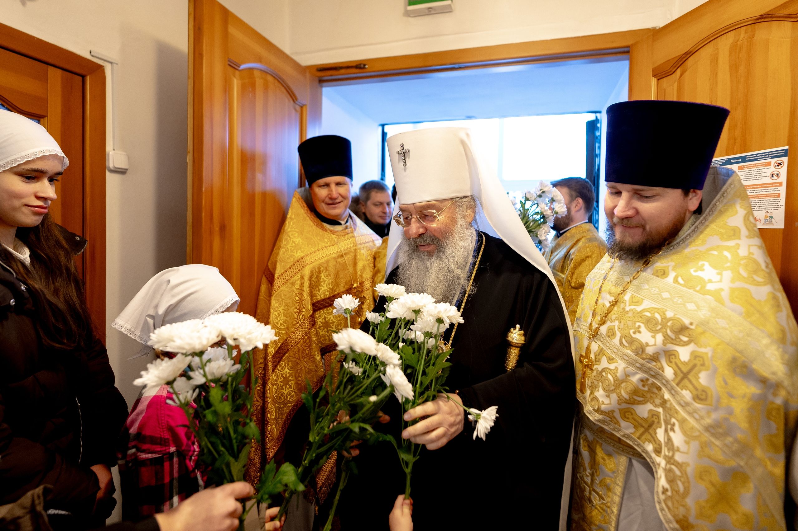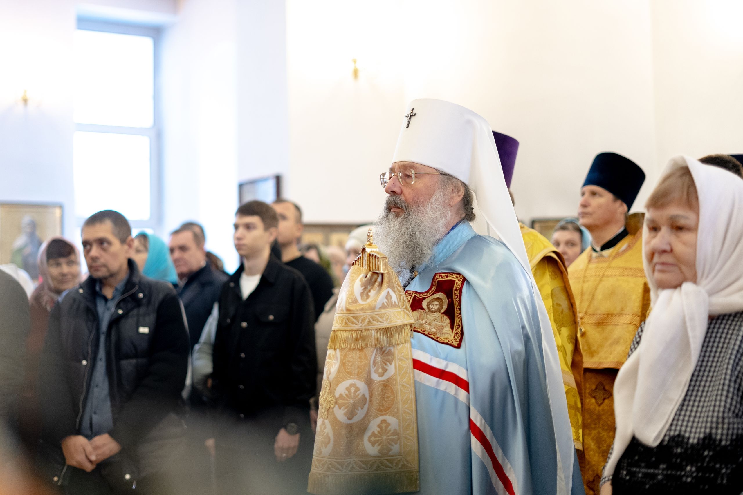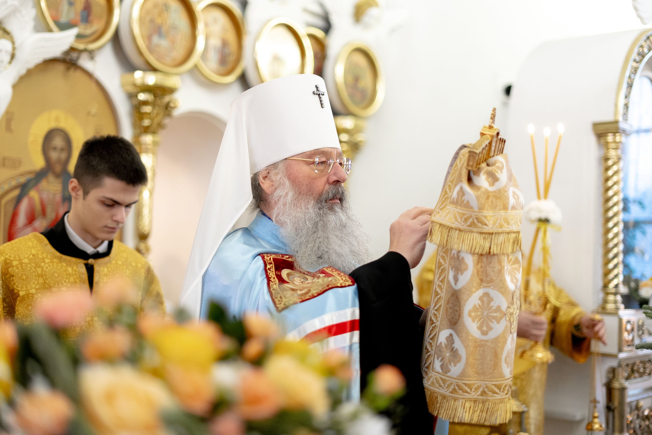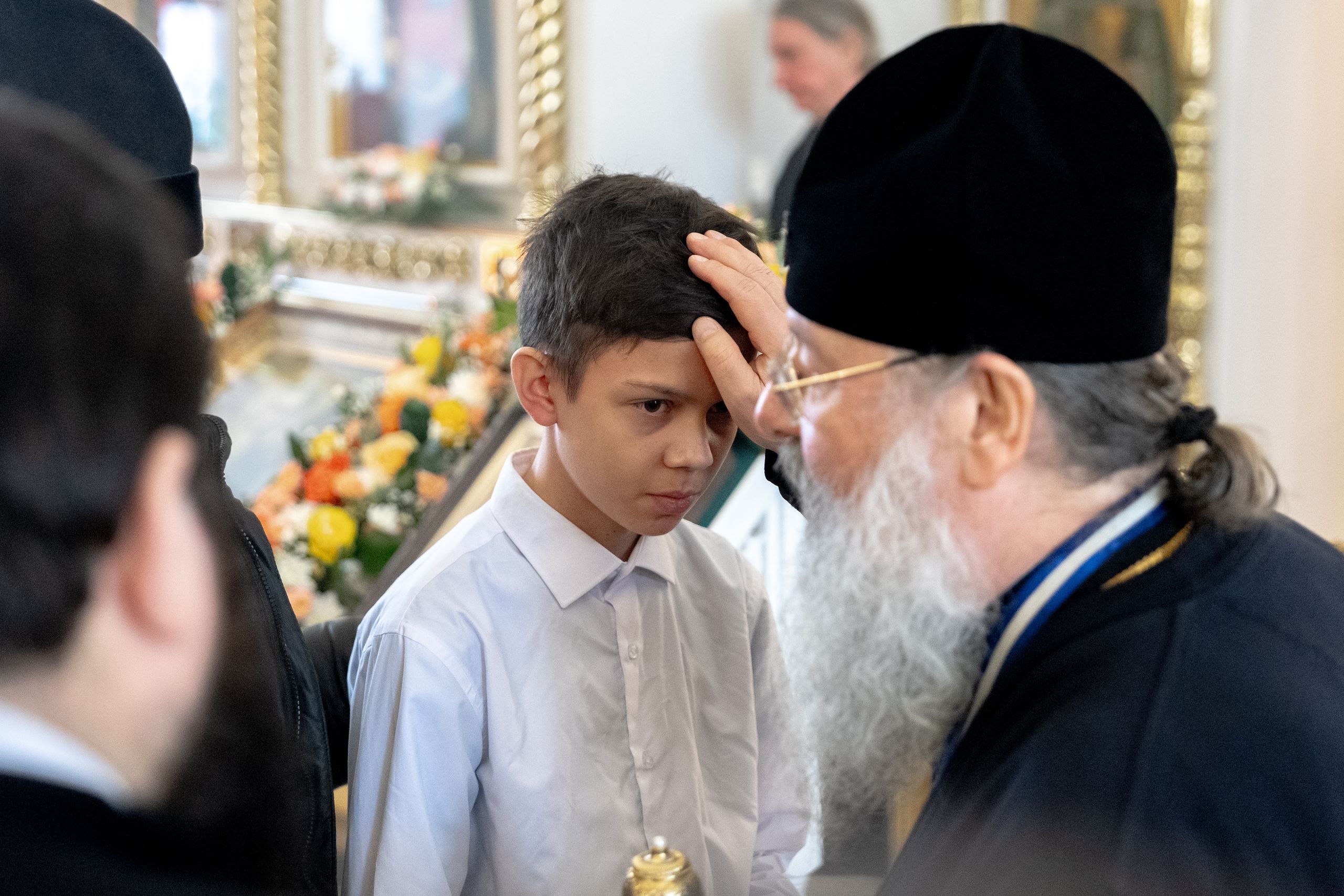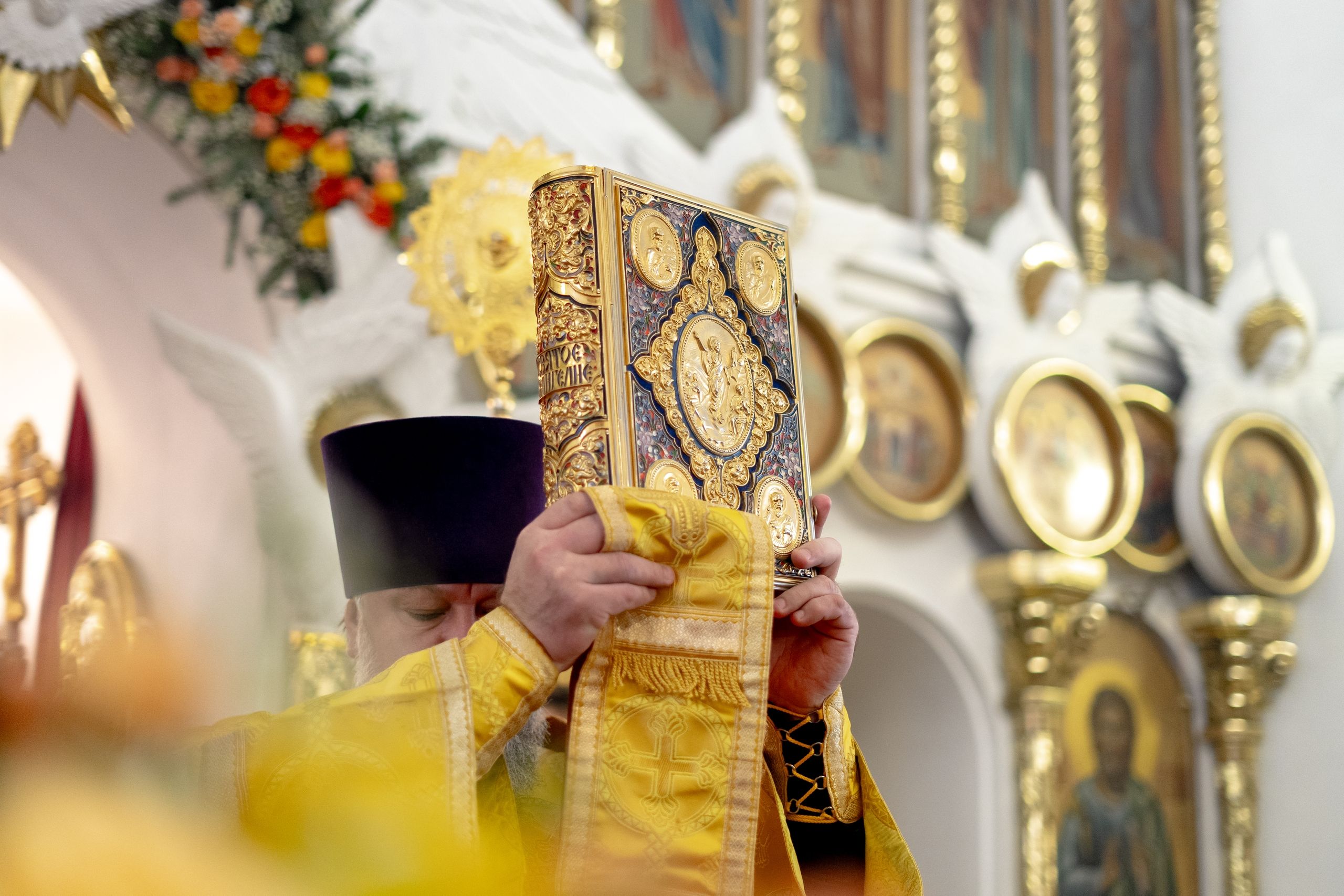 На мирной и сугубой ектениях были вознесены молитвы о Российском воинстве и о мире. По запричастном стихе проповедь произнёс игумен Пимен (Ивентьев).