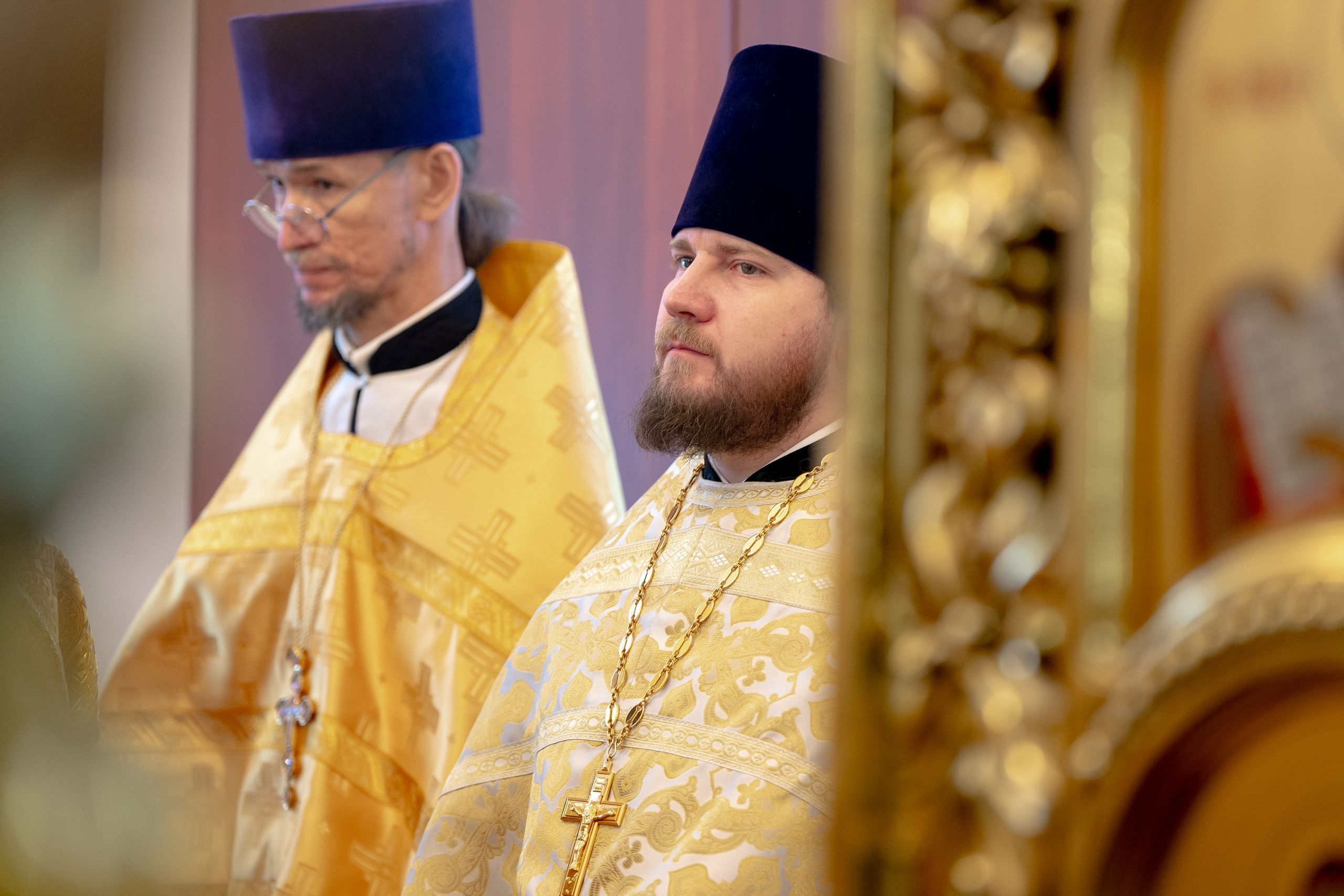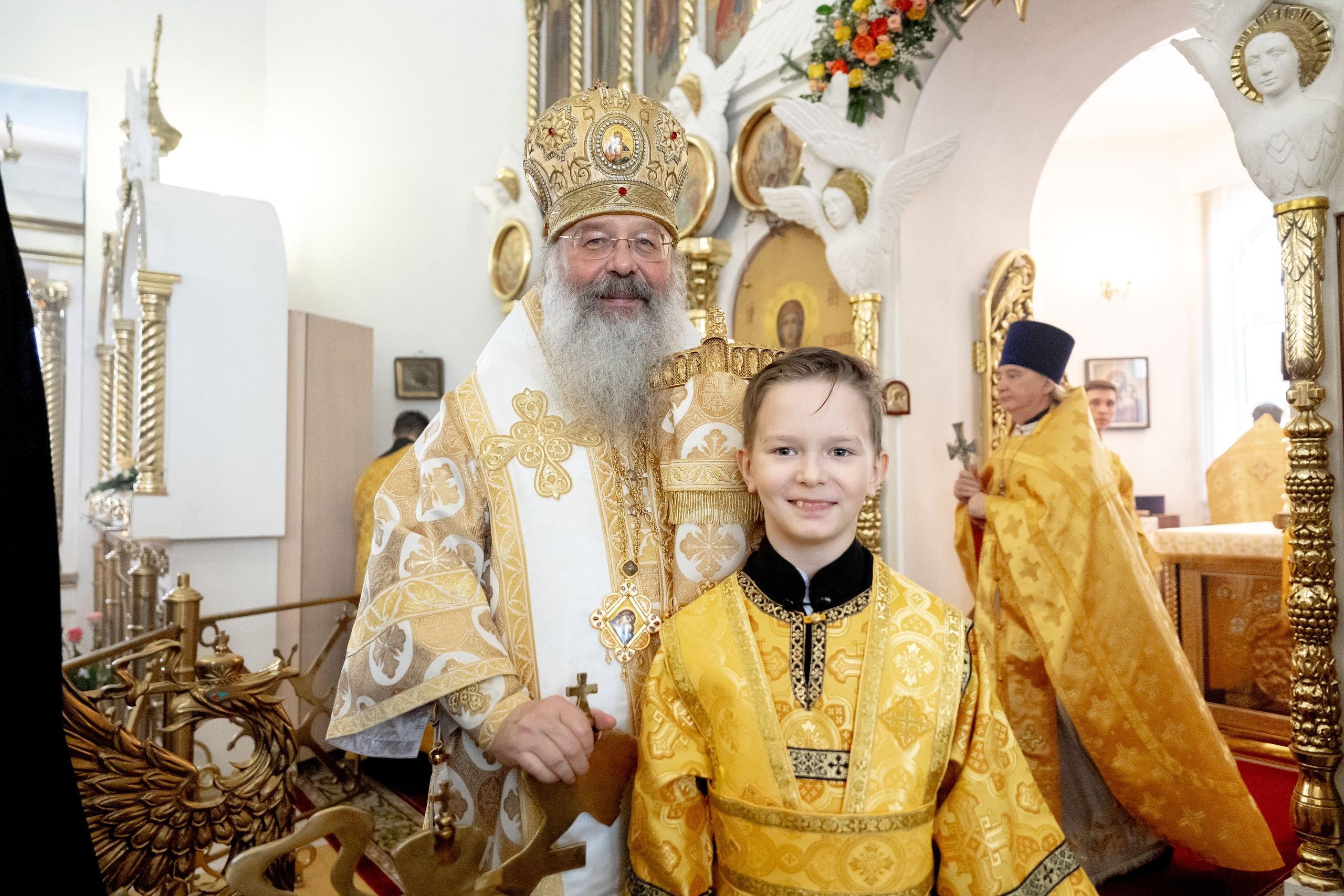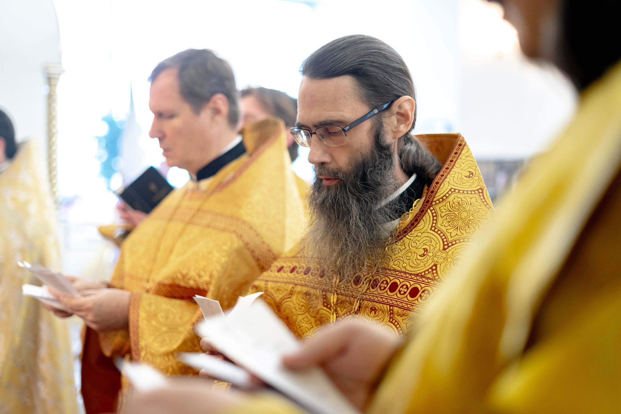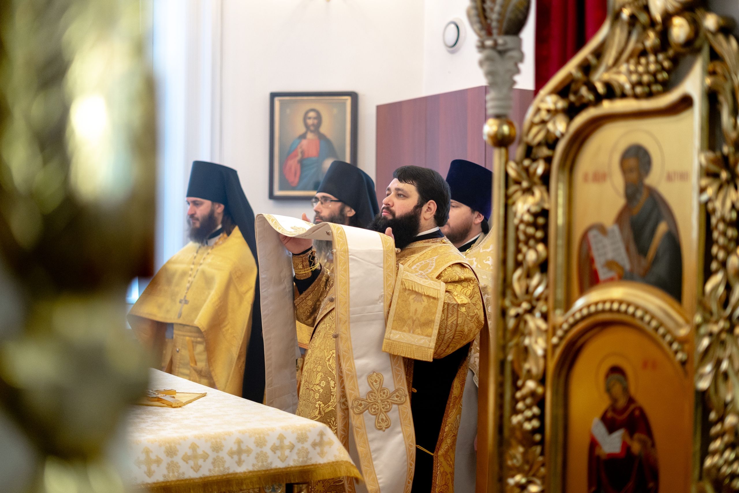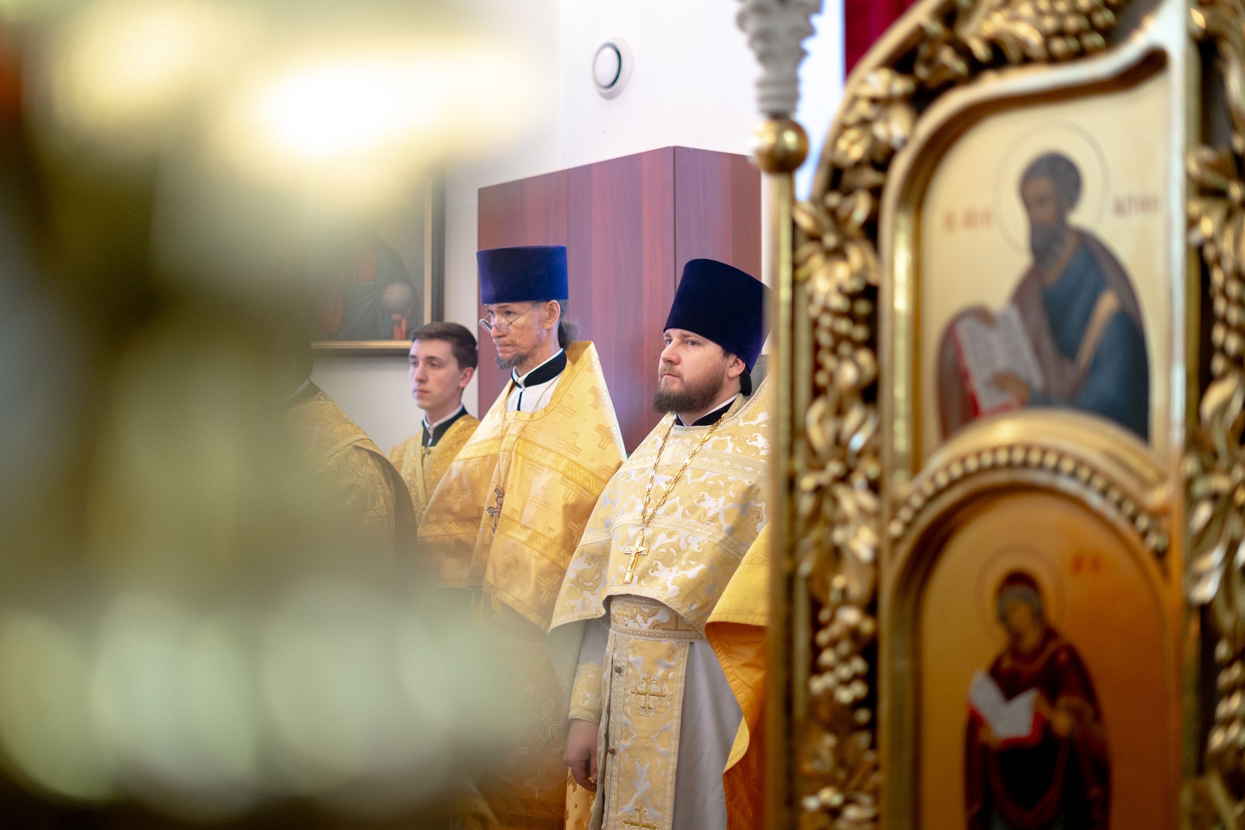 Его Высокопреосвященству сослужили секретарь Татарстанской митрополии иеромонах Кирилл (Корытко), благочинный Зеленодольского округа протоиерей Константин Люкшин, настоятель храма апостола Андрея Первозванного иерей Николай Назаров, настоятель Введенского Кизического монастыря города Казани игумен Пимен (Ивентьев), настоятель храма первоверховных апостолов Петра и Павла города Зеленодольска протоиерей Святослав Мирганиев.