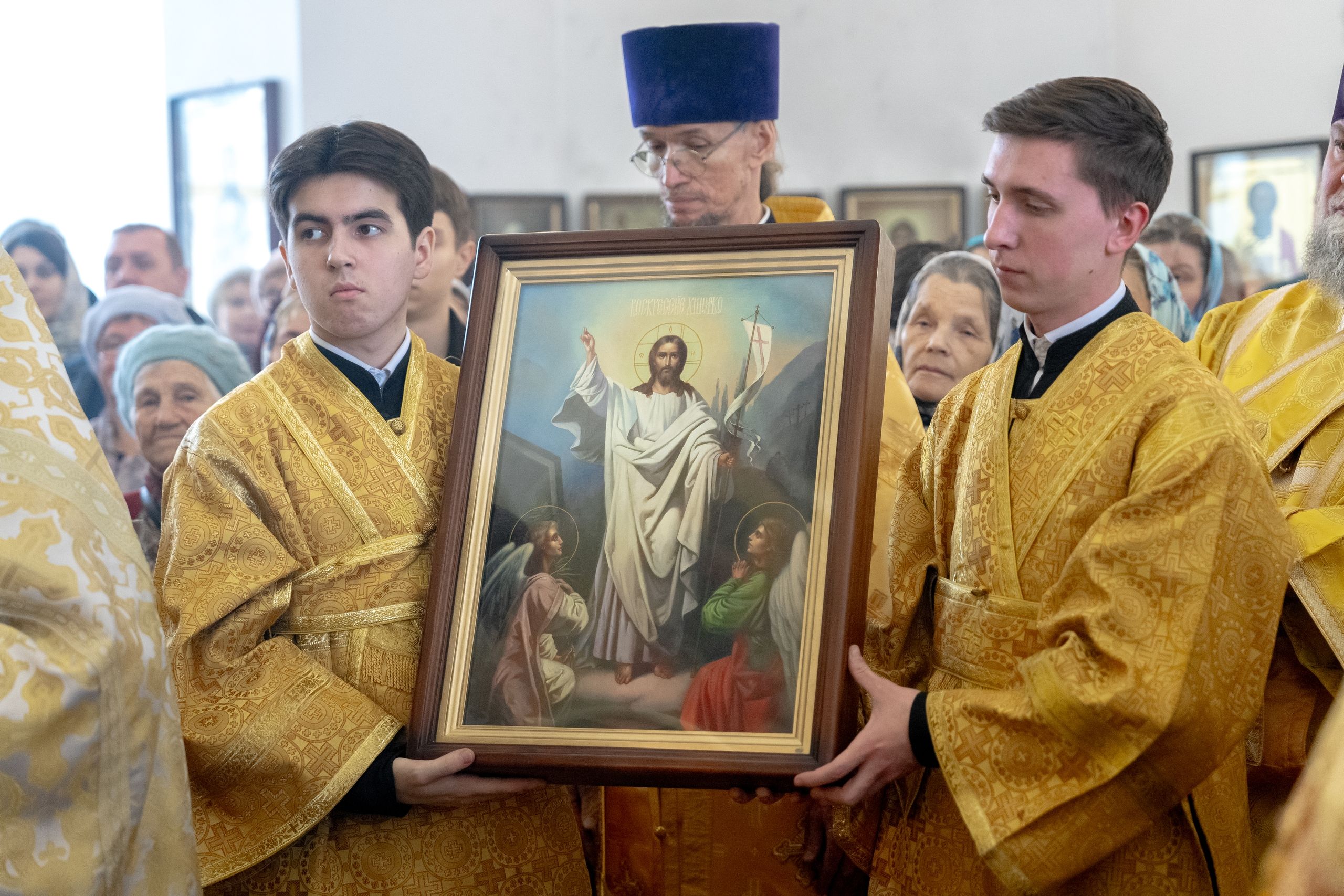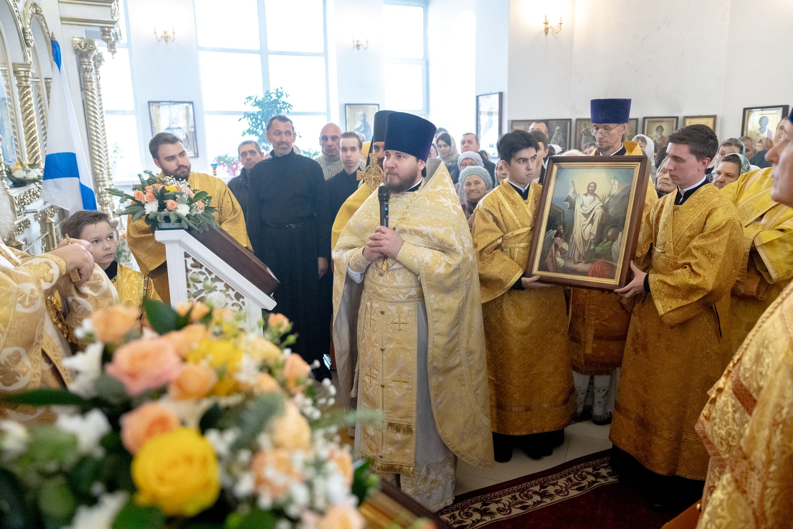 В ответном слове настоятель храма иерей Николай Назаров поблагодарил архипастыря за радость совместной молитвы в день престольного праздника. На молитвенную память священник преподнёс владыке Кириллу икону Воскресения Христова, написанную одним из прихожан Андреевского храма.