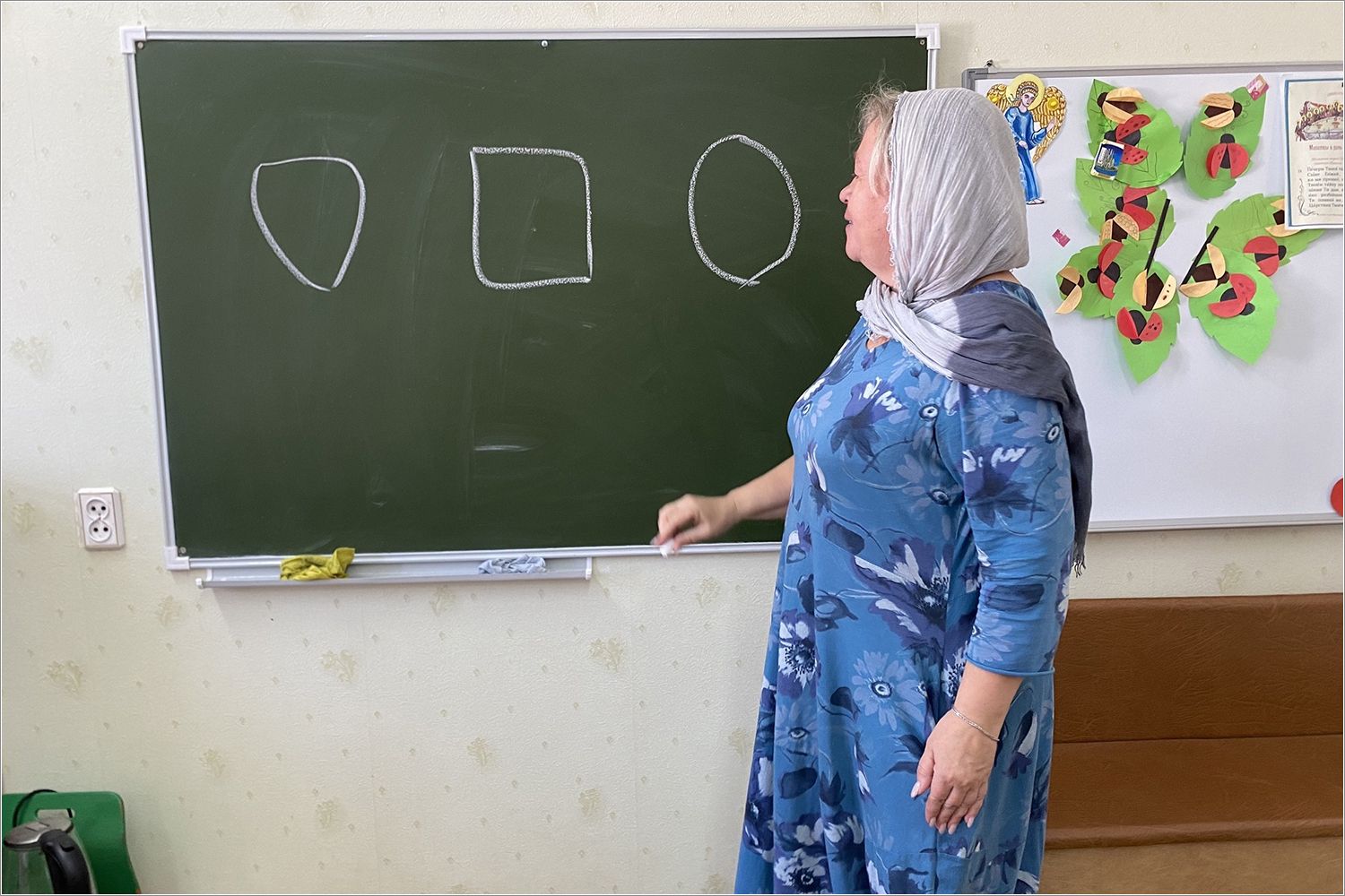 «Главная тема этого учебного года — Литургия. Ребята уже достаточно взрослые, они должны не просто стоять на службе, но и понимать, что происходит и участвовать в богослужении», — рассказала педагог группы «Добро» Олеся Никитина.