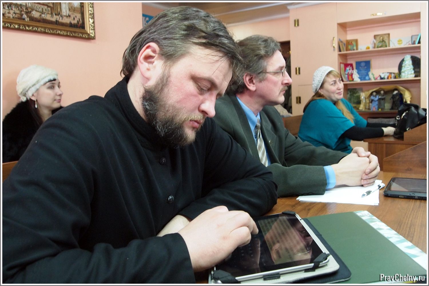 Продолжилась встреча в помещении воскресной школы прихода, где были представлены презентации по молодежной, катехизаторской, миссионерской, образовательной, информационно-издательской, социально-благотворительной деятельности Спасского благочиния. В свою очередь и челнинцы поделились опытом работы в молодежной, педагогической и информационной сферах.