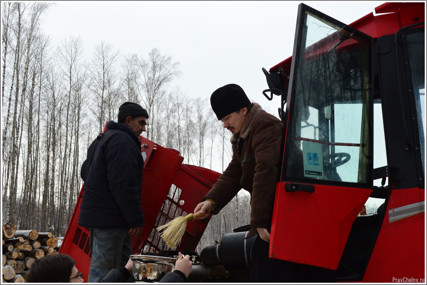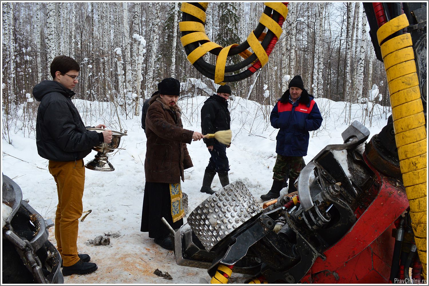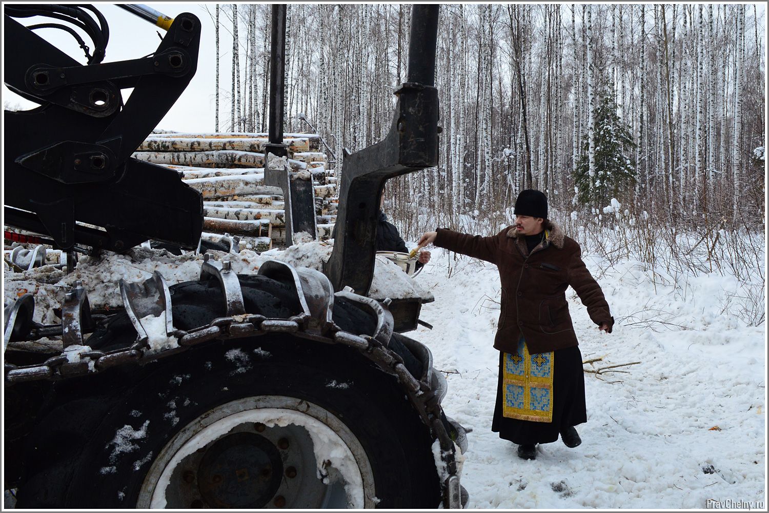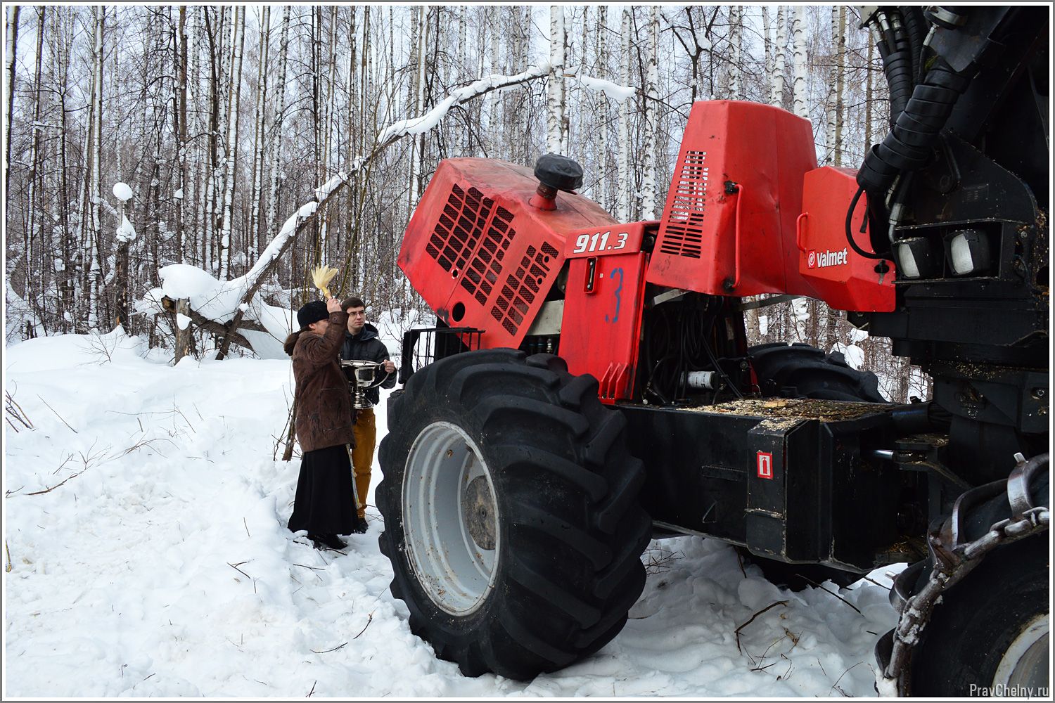 По окончании богослужения клириками был освящен механизированный комплекс для валки леса.