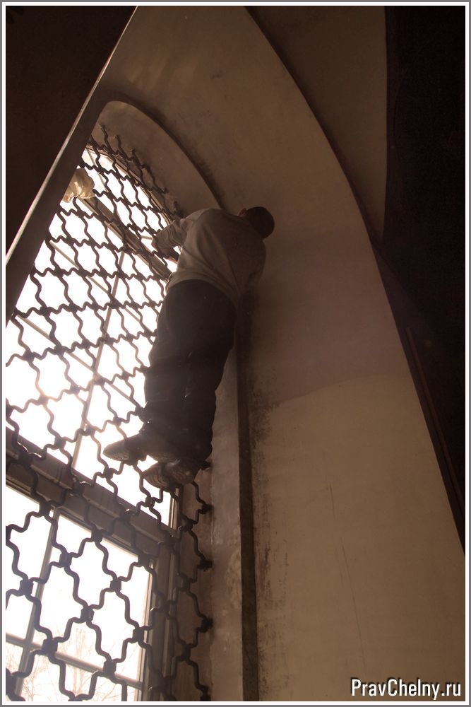 Набережные Челны, 11 апреля — Православное Закамье. 9-10 апреля после утренних богослужений прихожане и работники Свято-Вознесенского собора Набережных Челнов занимались подготовкой своего любимого храма к грядущему празднику Пасхи. В перерывах между службами верующие приводили в порядок церковную утварь, мыли стены, иконы и окна.