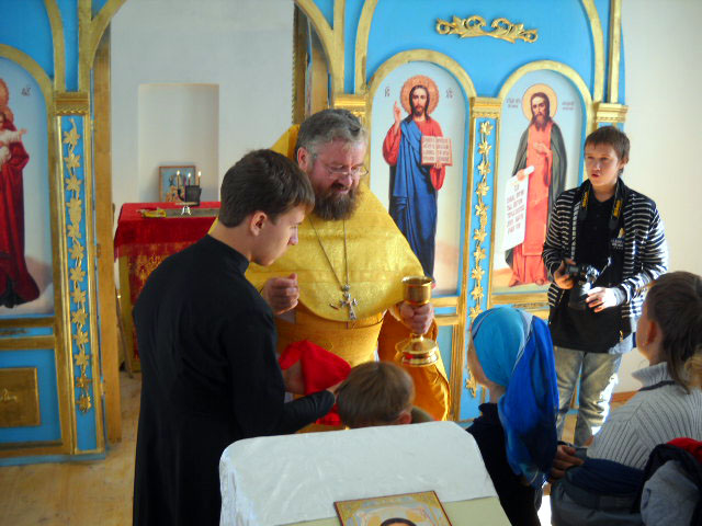 Все участники поездки молились за Божественной литургии в храме, которое возглавил благочинный Набережночелнинского округа протоиерей Олег Богданов. Некоторые из воспитанников духовных школ причастились Святых Христовых Таин.