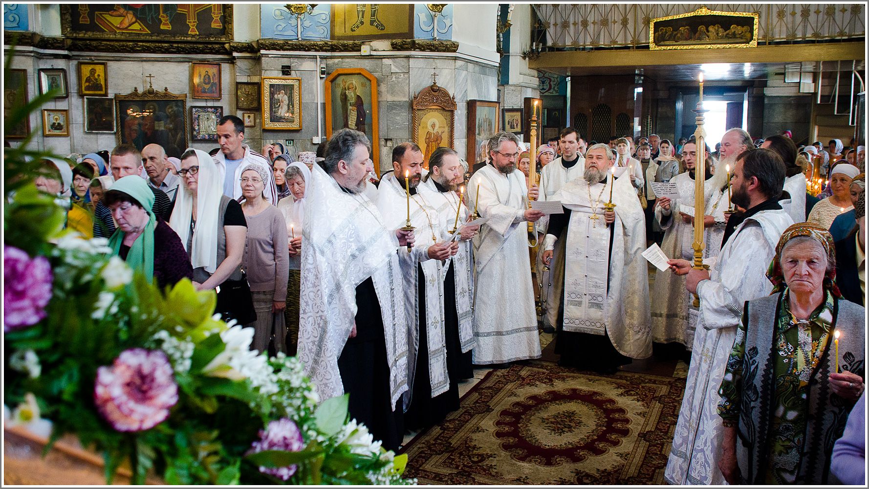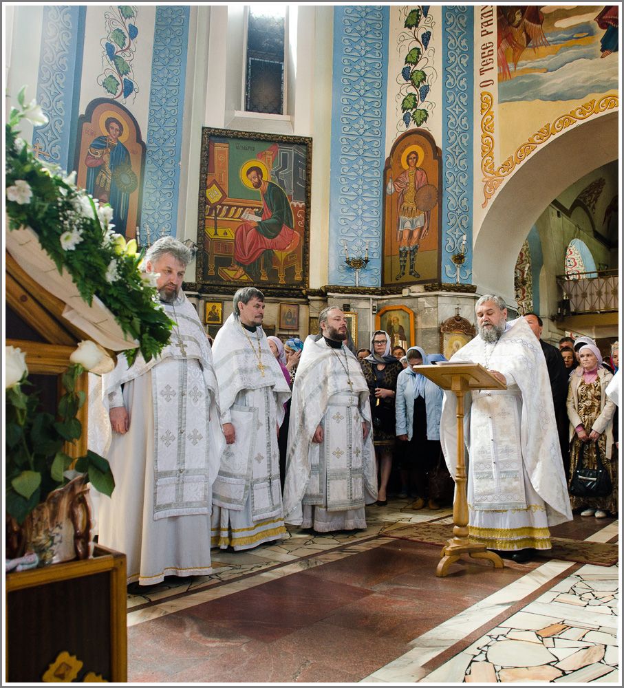 После Литургии под перезвон колоколов и пение праздничного тропаря состоялся Крестный ход вокруг собора, завершившийся общим молебном, а во дворе храма прошла благотворительная ярмарка по сбору средств для детей-инвалидов.