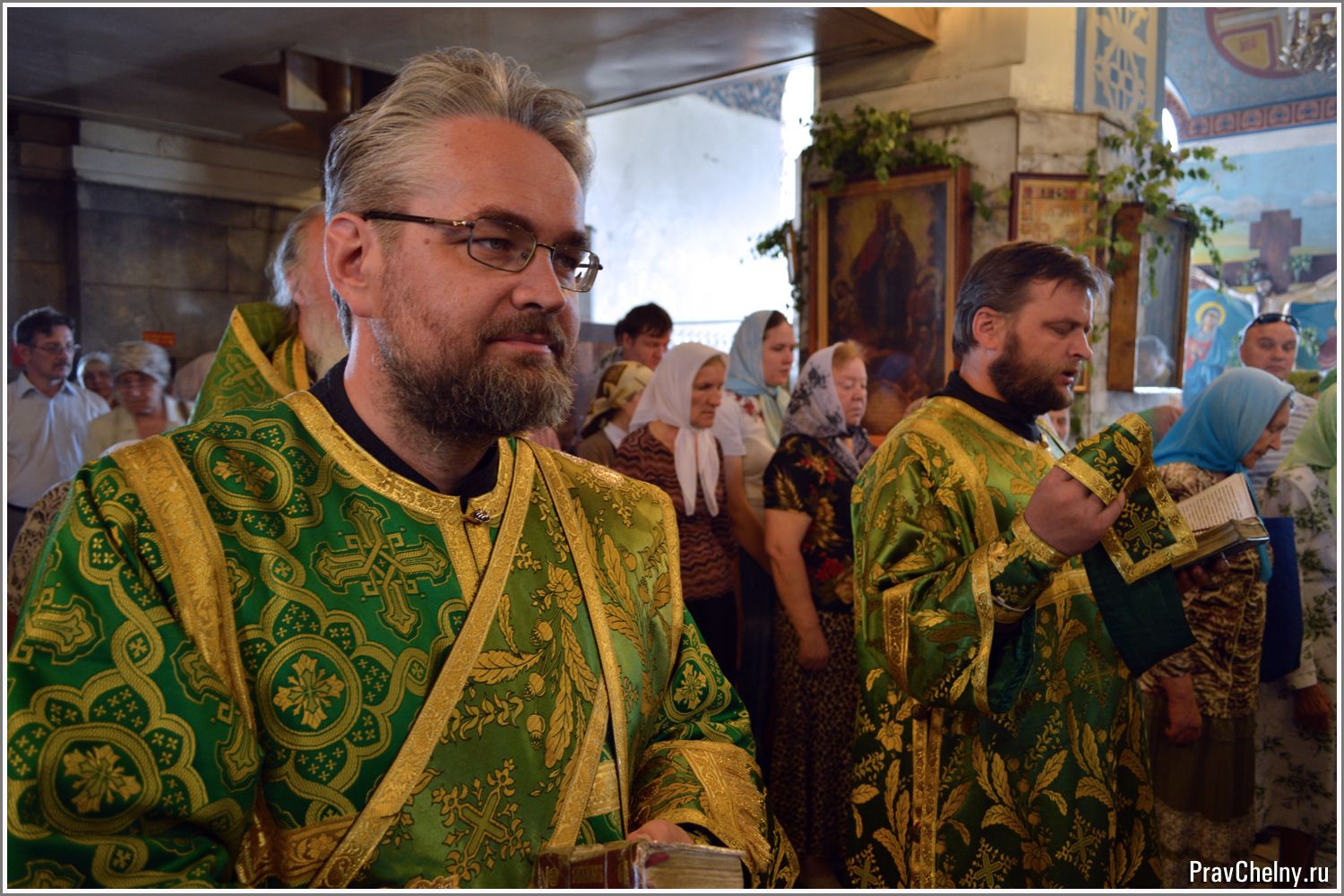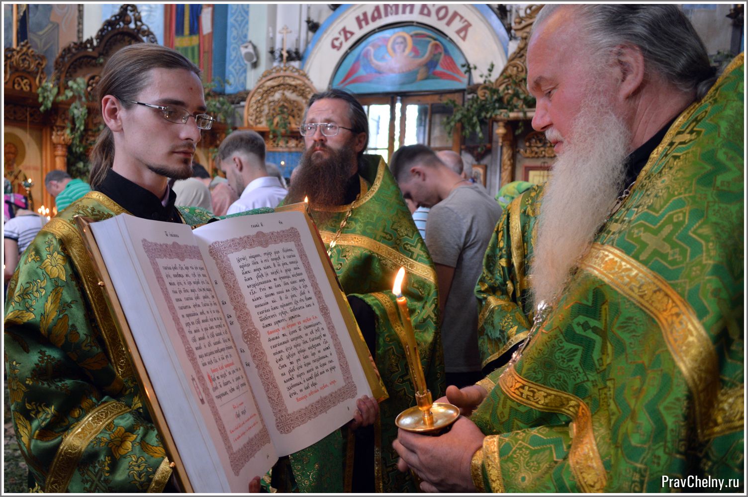 Праздничные Богослужения в Свято-Вознесенском соборе Набережных Челнов начались в субботу Всенощным бдением и продолжились на следующий день Божественной литургией. Во время воскресной службы многие присутствующие приступили к Таинству Причастия. Богослужение в день Троицы возглавил благочинный Закамского региона и настоятель собора протоиерей Андрей Дубровин.