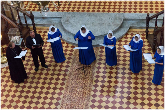 Третьим радовал гостей фестиваля Государственный камерный хор Республики Татарстан под управлением Миляуши Таминдаровой. Лившееся с верхнего клироса пение то превращалось в летний теплый солнечный дождь, то восхищало низвергающимся водопадом, позлащенным богатыми тембрами певцов. Картину дополняли высочайшее мастерство в передаче звуковой палитры и интересные разработки в интерпретации.