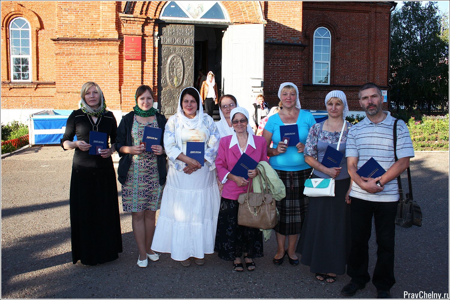 Набережные Челны, 15 июля — Православное Закамье, Юлия Кокорина. 12 июля на вечернем богослужении, в день первоверховных апостолов Петра и Павла, в Свято-Вознесенском Архиерейском подворье выпускникам Школы катехизаторов 2014 года были торжественно вручены дипломы об окончании трехлетнего курса обучения. Это уже третий выпуск студентов за время существования Школы. Учебное заведение действует в Духовно-просветительском центре святителя Гурия Казанского при Боровецкой церкви с 2007 года — с этого времени 26 выпускников получили духовное образование в стенах Школы при Свято-Вознесенском соборе.