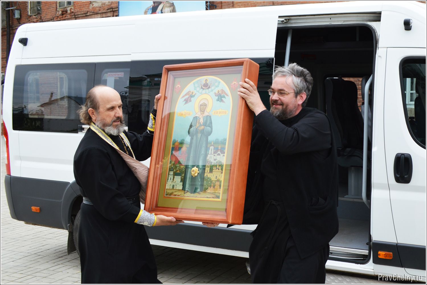 В Покровском соборе г. Елабуги в течение двух недель будет пребывать икона святой блаженной Матроны Московской с частицей ее святых мощей, которая прибыла из Свято-Вознесенского Архиерейского подворья г. Набережные Челны, по приглашению благочинного Елабужского округа протоиерея Сергия Лепихина. Встречал икону клирик Покровского собора протоиерей Георгий Бельский вместе с работниками и прихожанами церкви. Торжественная встреча продолжилась молебным пением в честь блаженной Матроны. Икона пробудет в соборе до 27 июля.