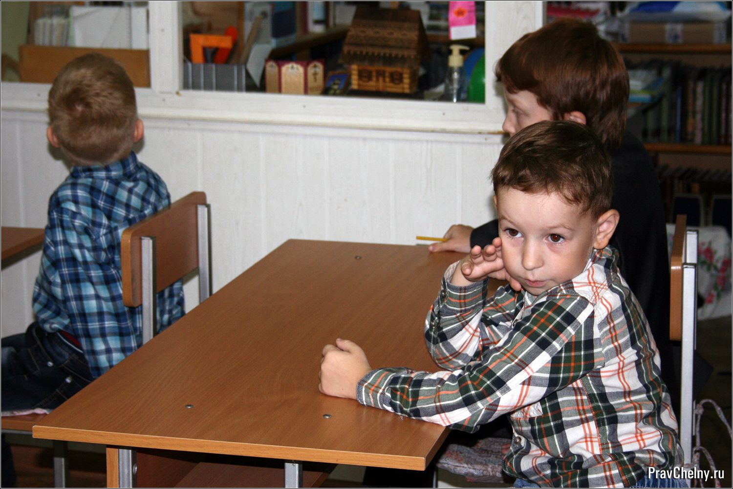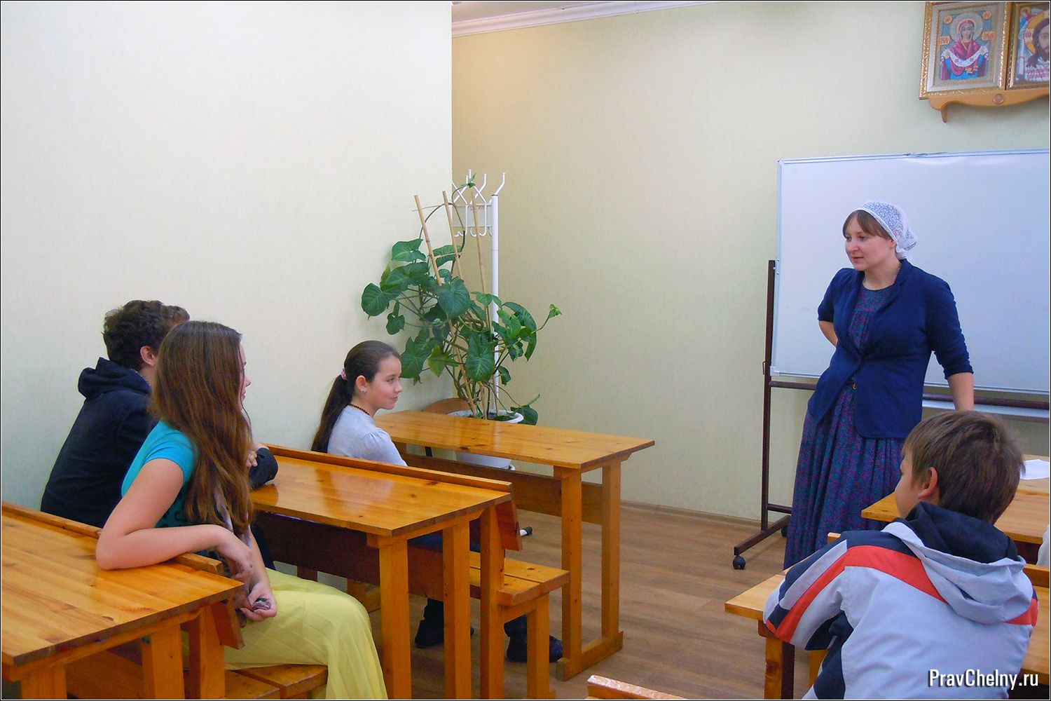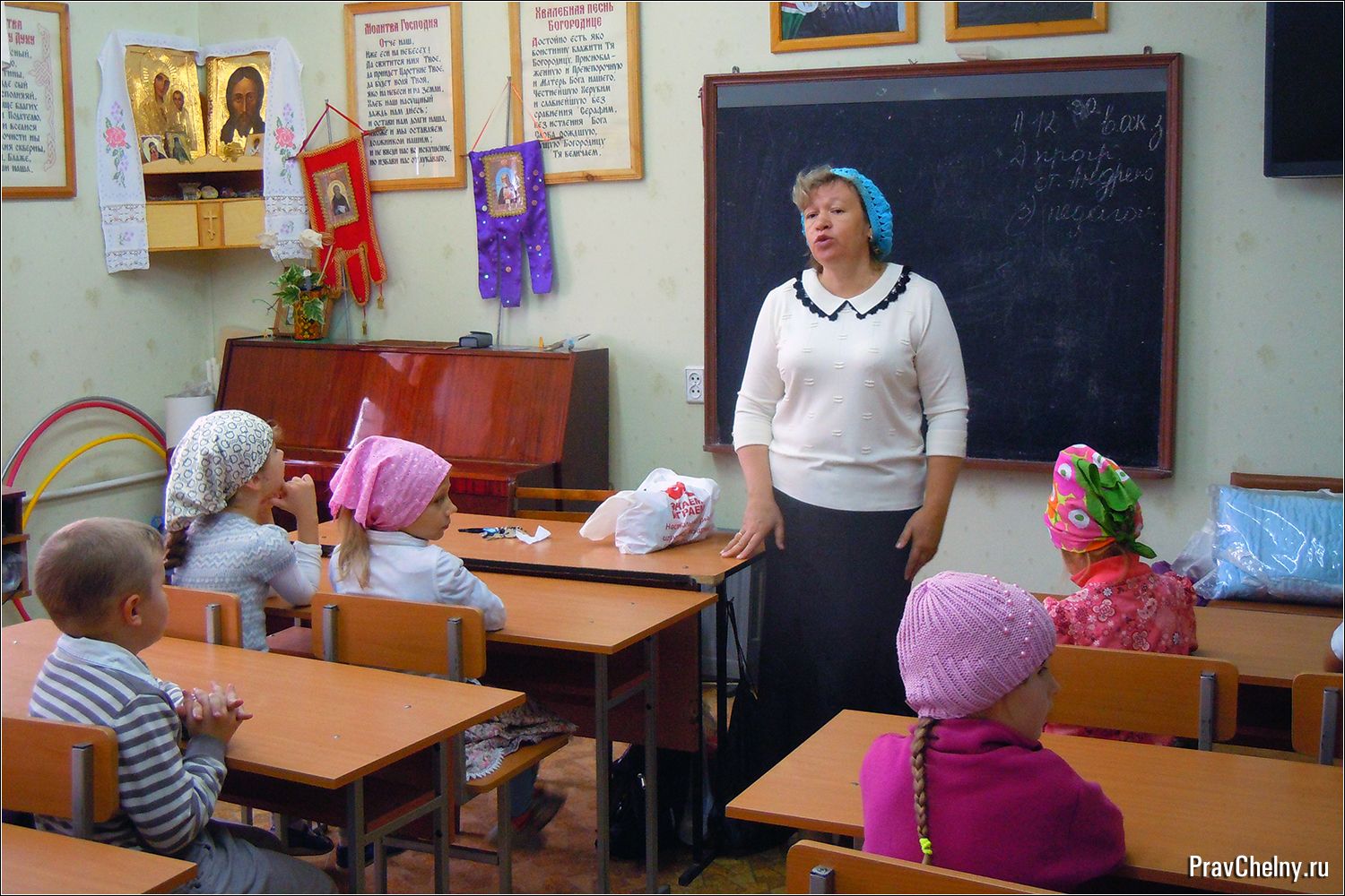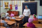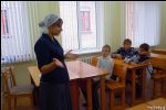 После молебна ученики разошлись по классам, и начался первый в этом году урок — Основы православной культуры. Перед тем, как начать занятие, педагоги поговорили с ребятами, рассказали об изменениях в воскресной школе и решили организационные вопросы.