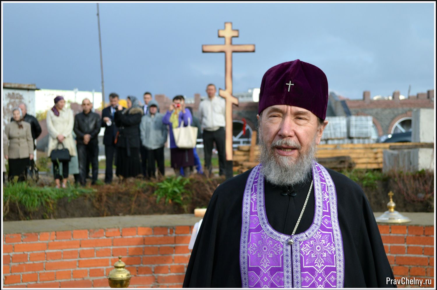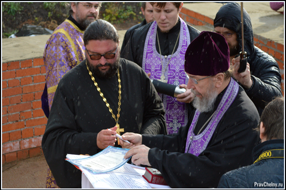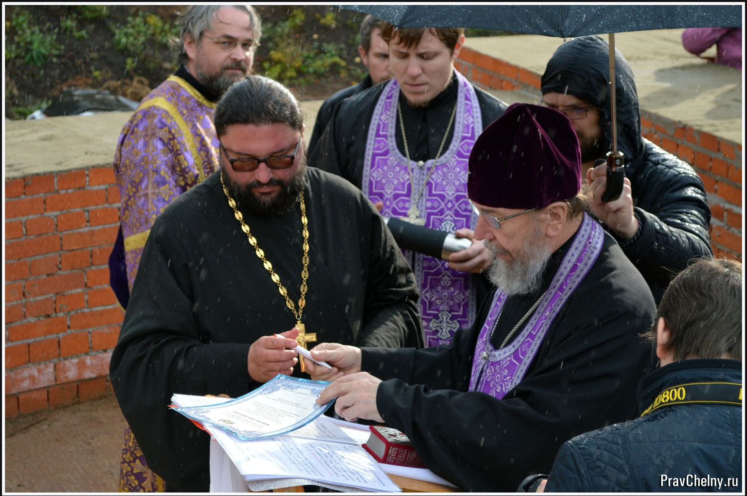 Архиерей призвал благословение Божие на всех пришедших в этот день поучаствовать в этом историческом событии, а настоятелю будущей церкви пожелал, чтобы физические и духовные силы сопутствовали ему в строительстве этого прекрасного храма. Митрополит Анастасий выразил надежду на более активное участие и посильную помощь верующих, ведь храм необходим челнинцам, и сообщил, что проект, по которому строится Казанская церковь, уже воплощен в нескольких храмах в г. Казани. Владыка верит, что этот дом Божий будет не хуже, а краше тех, что уже стоят на нашей Казанской земле.