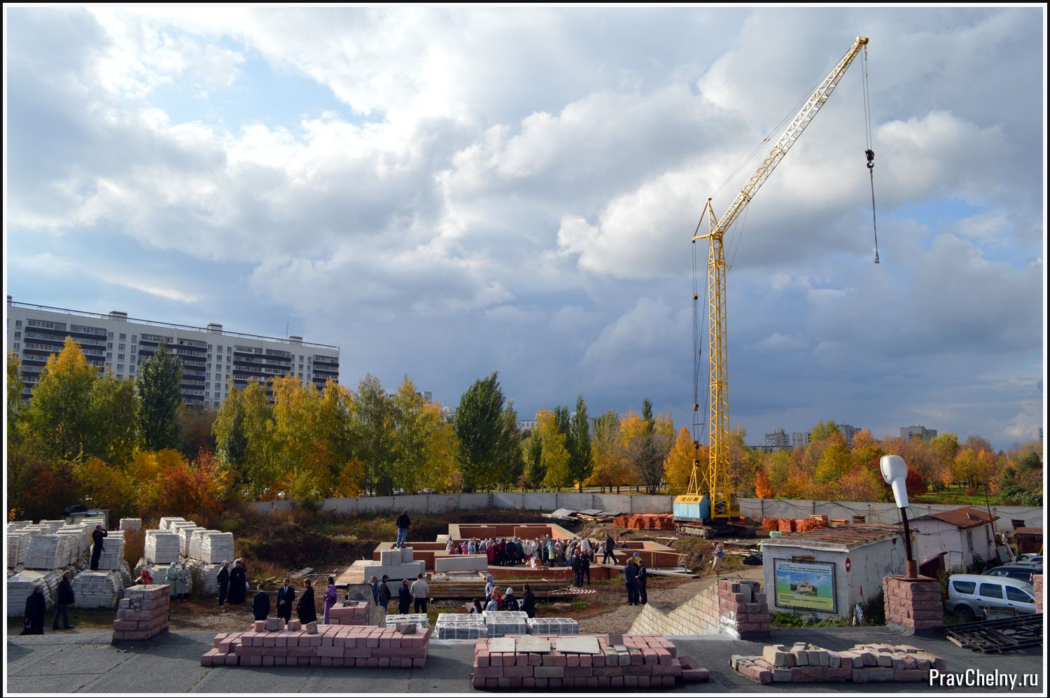 Набережные Челны, 30 сентября — Православное Закамье, Вероника Вяткина, Юлия Кокорина. Прошли переживания по утрате сгоревшего храма Рождества Христова, верующие со смирением приняли волю Божью и решили не входить в одну реку дважды. Проанализировав все нюансы строительства, священнослужители прихода вместе с застройщиками решили не строить деревянный храм, теперь рядом будет создаваться кирпичная церковь в честь Казанской иконы Божией Матери. Благословить нелегкий путь строительства приехал митрополит Казанский и Татарстанский Анастасий.