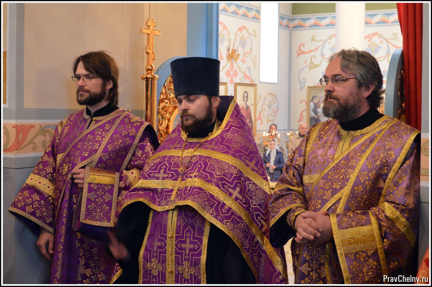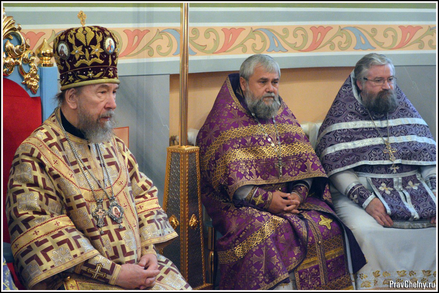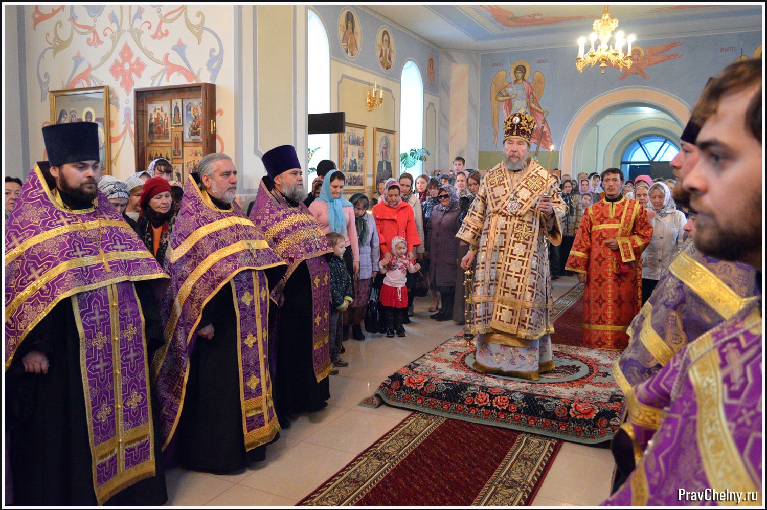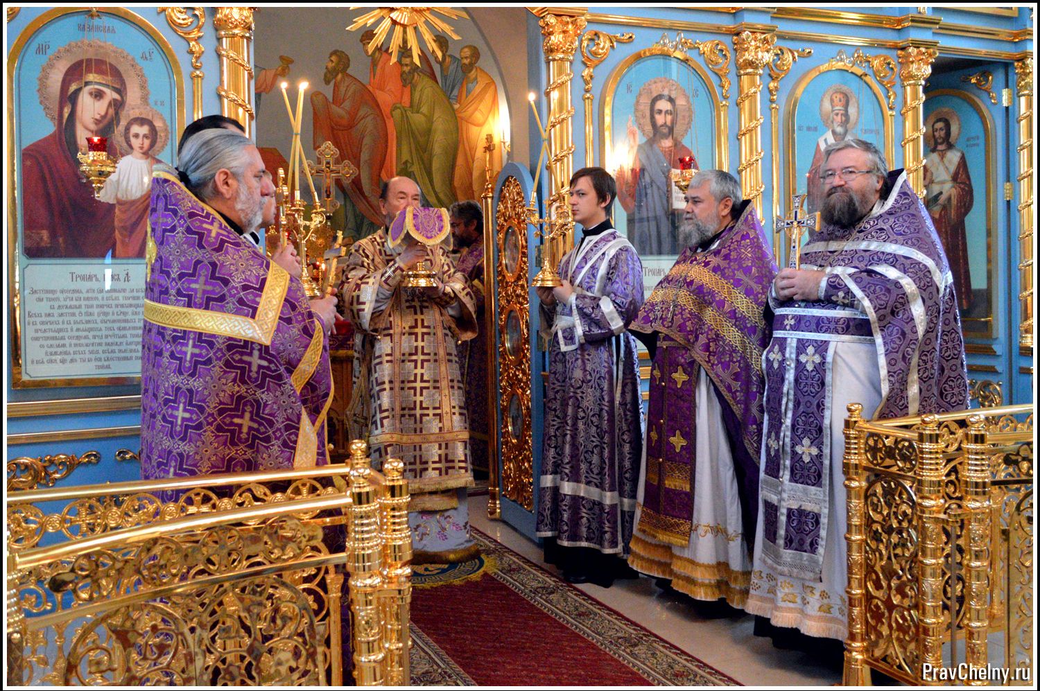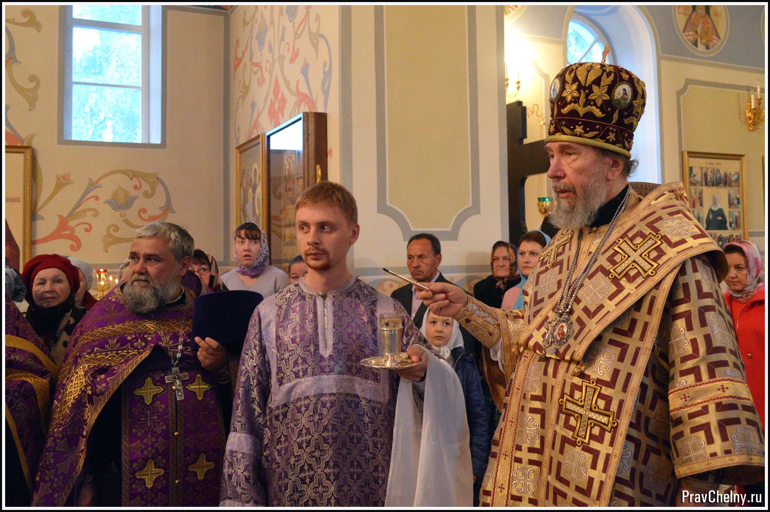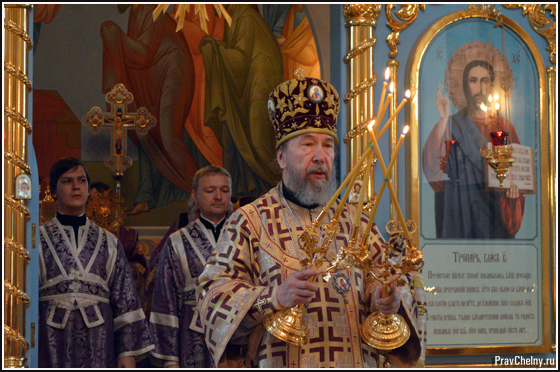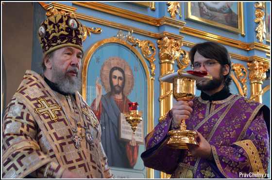 За Всенощным бдением и Божественной литургией Владыке сослужили священнослужители Казани, Челнов вместе с благочинным протоиереем Андреем Дубровиным, а так же духовенство Елабуги и ближайших сёл.