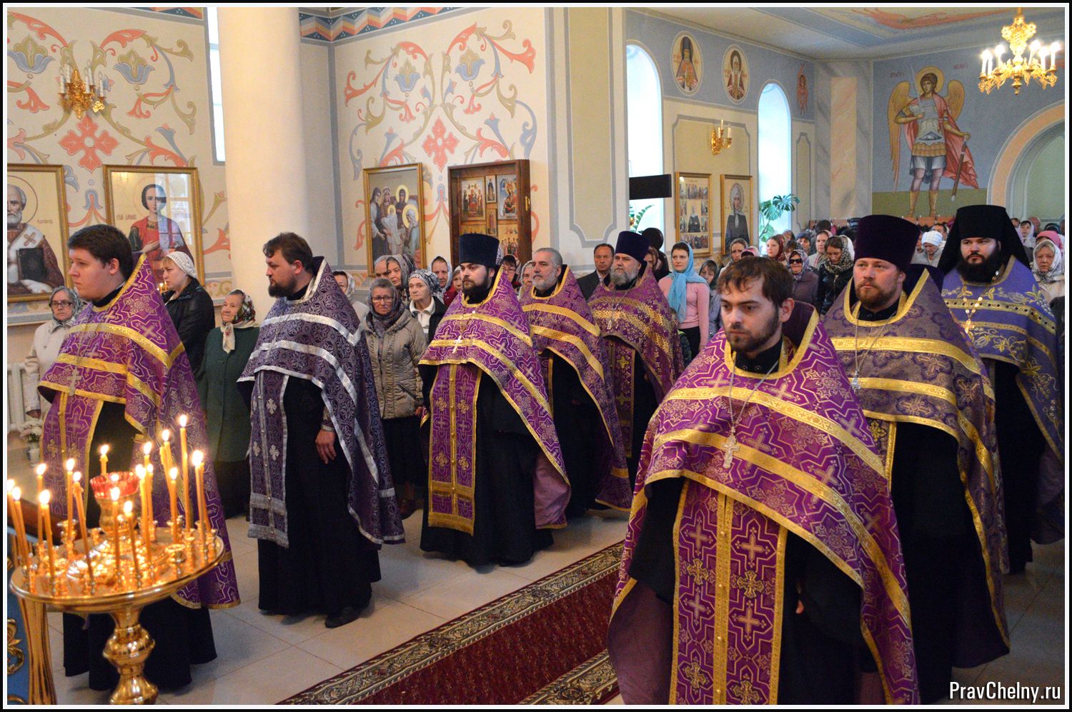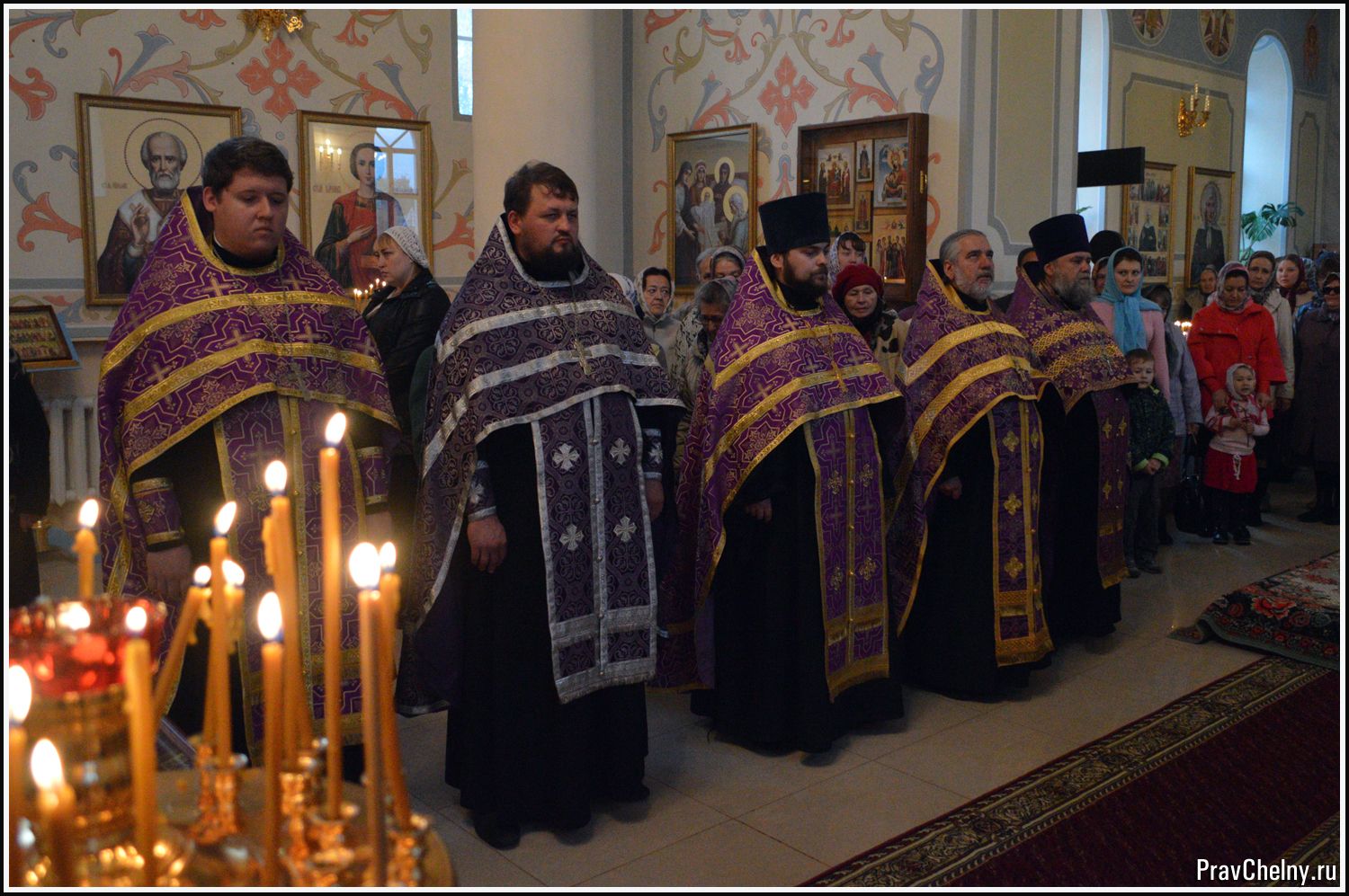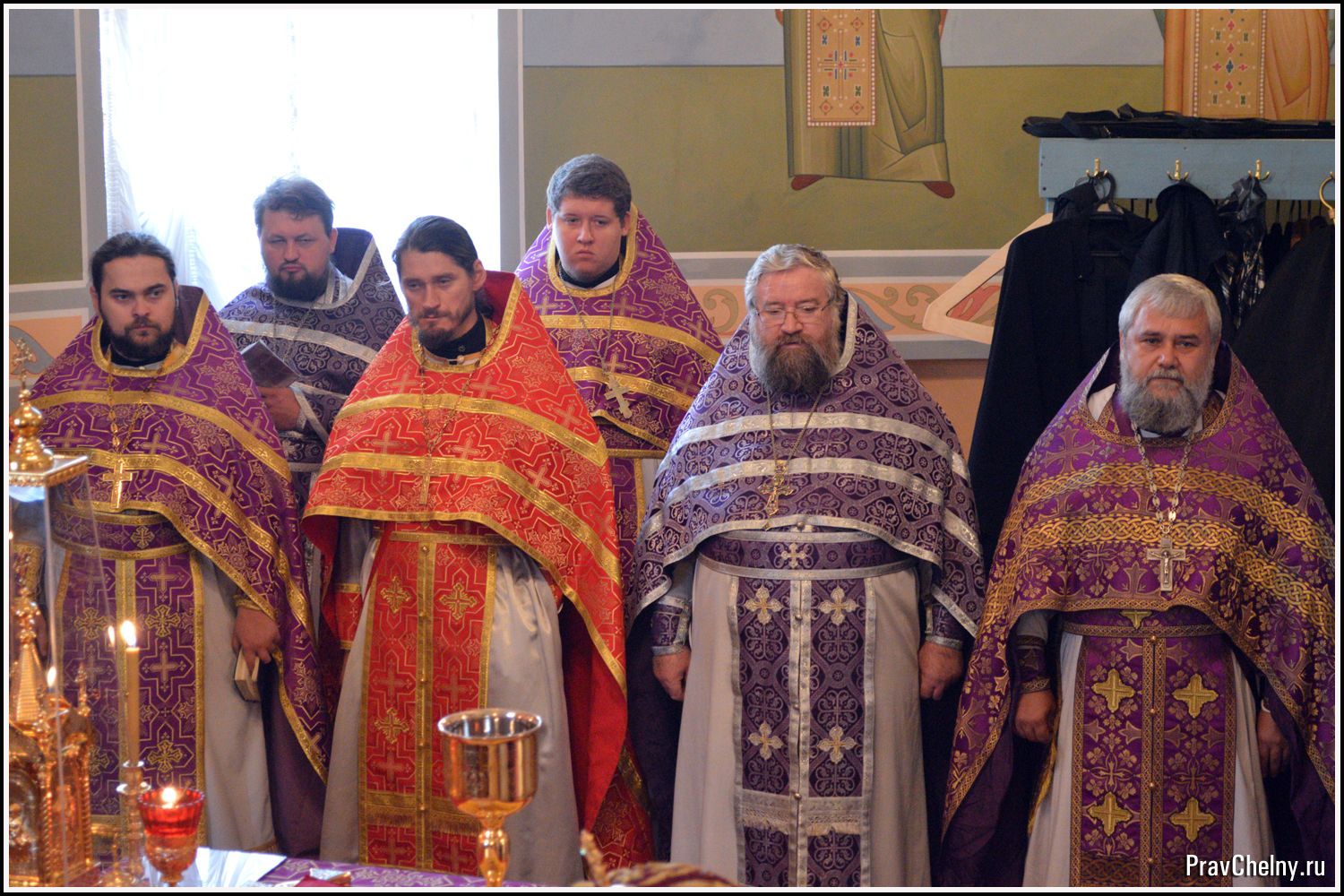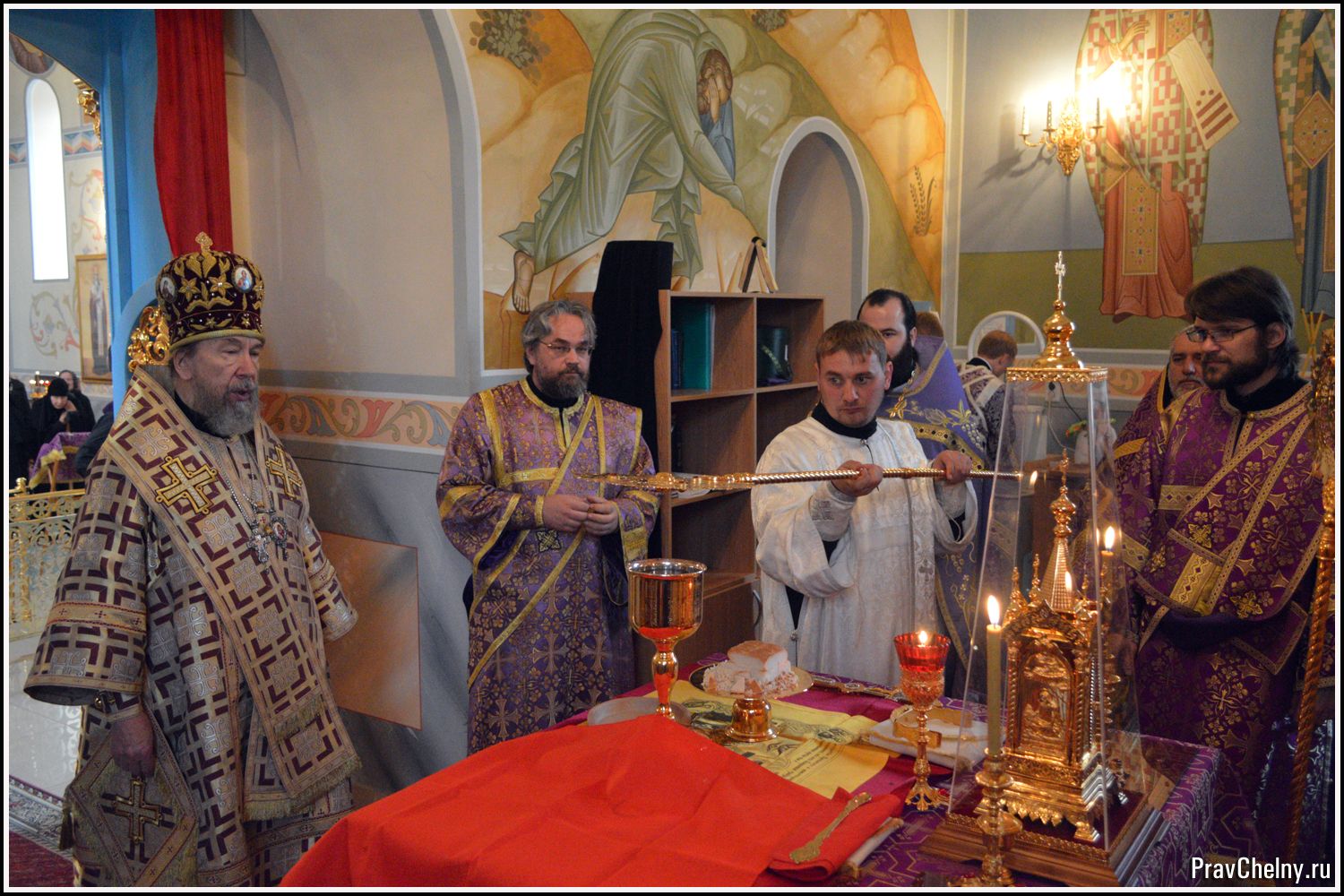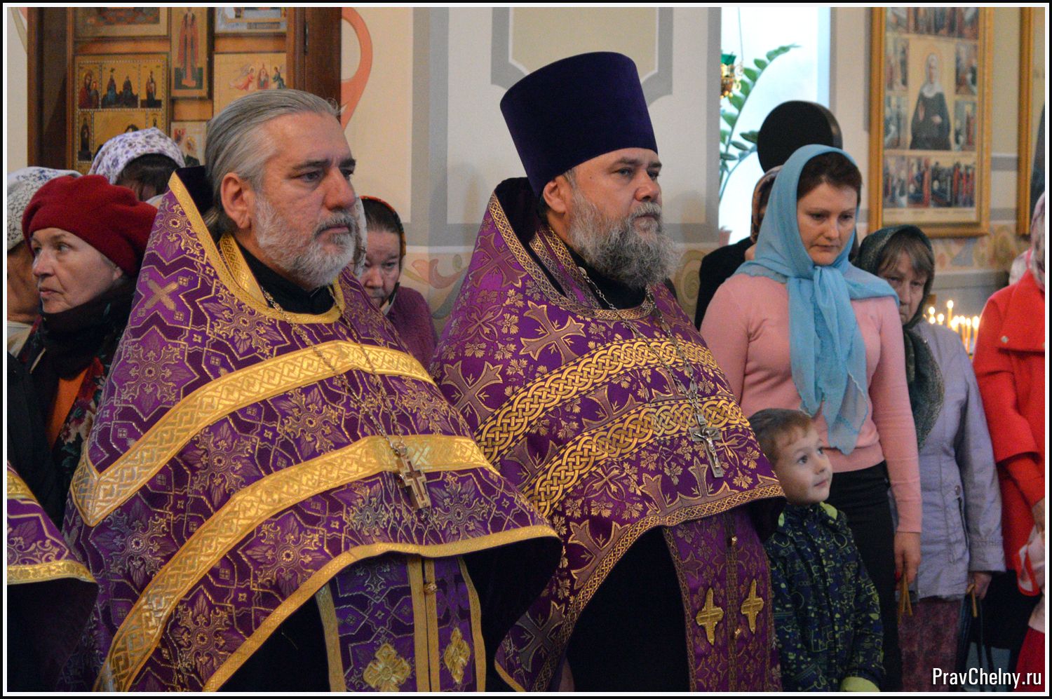 За Всенощным бдением и Божественной литургией Владыке сослужили священнослужители Казани, Челнов вместе с благочинным протоиереем Андреем Дубровиным, а так же духовенство Елабуги и ближайших сёл.