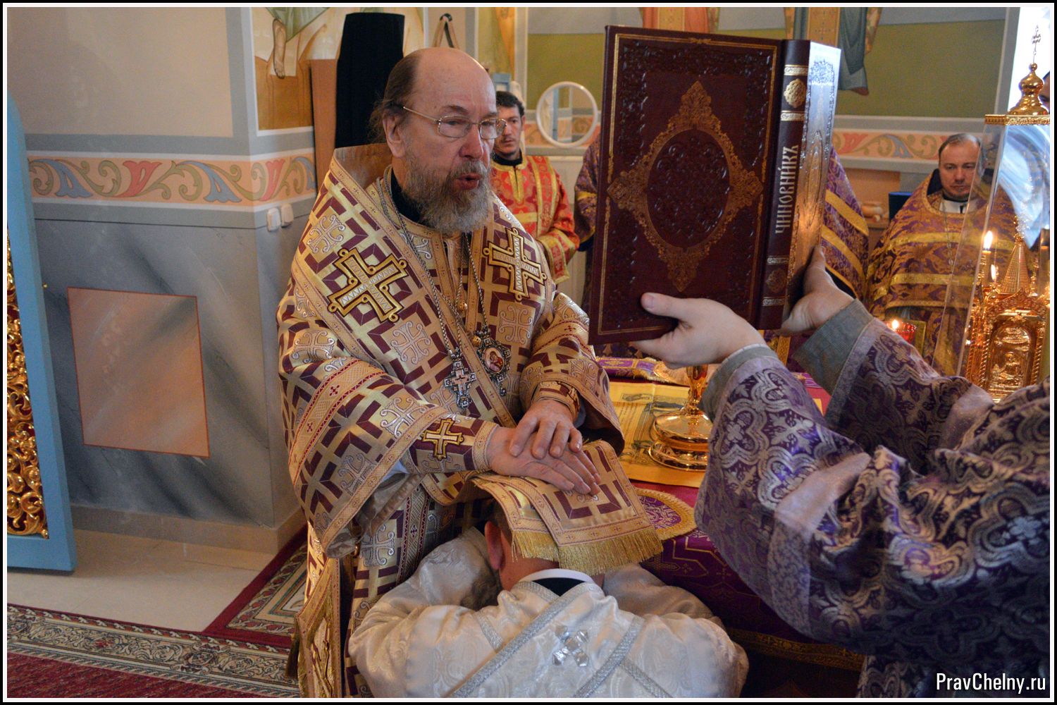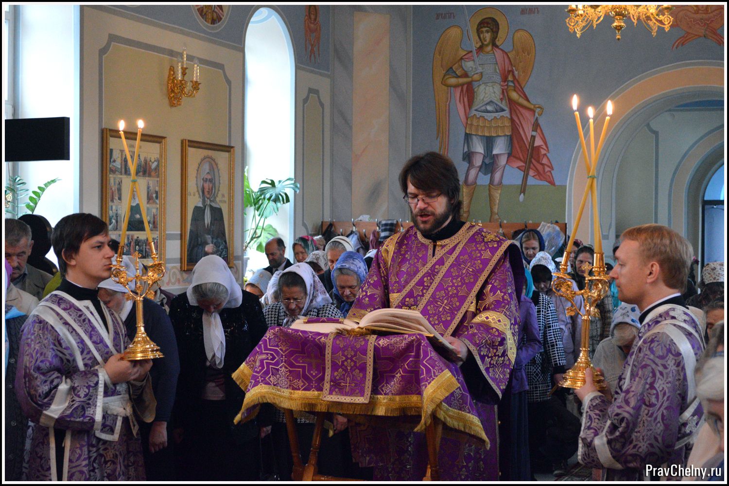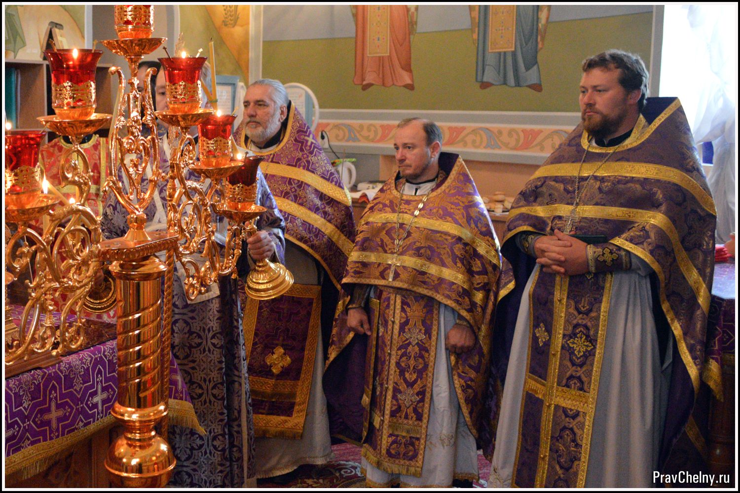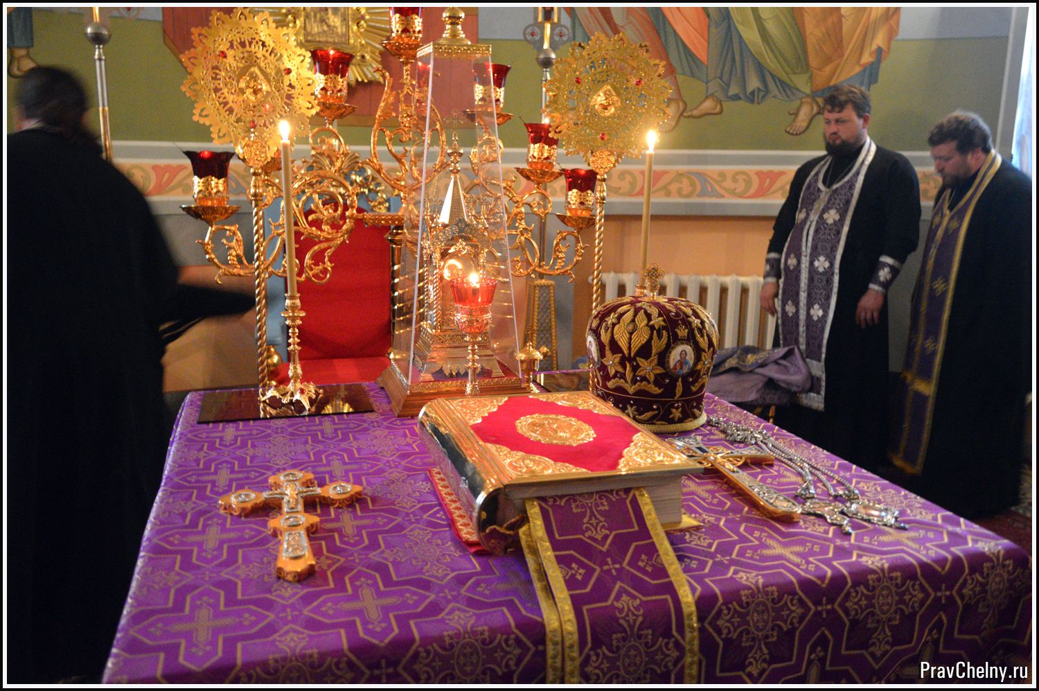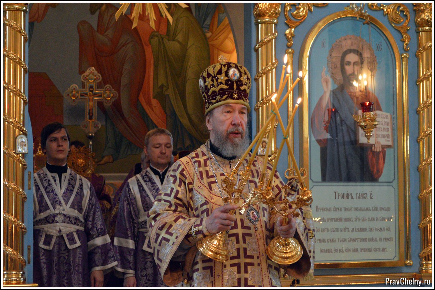 За Всенощным бдением и Божественной литургией Владыке сослужили священнослужители Казани, Челнов вместе с благочинным протоиереем Андреем Дубровиным, а так же духовенство Елабуги и ближайших сёл.