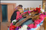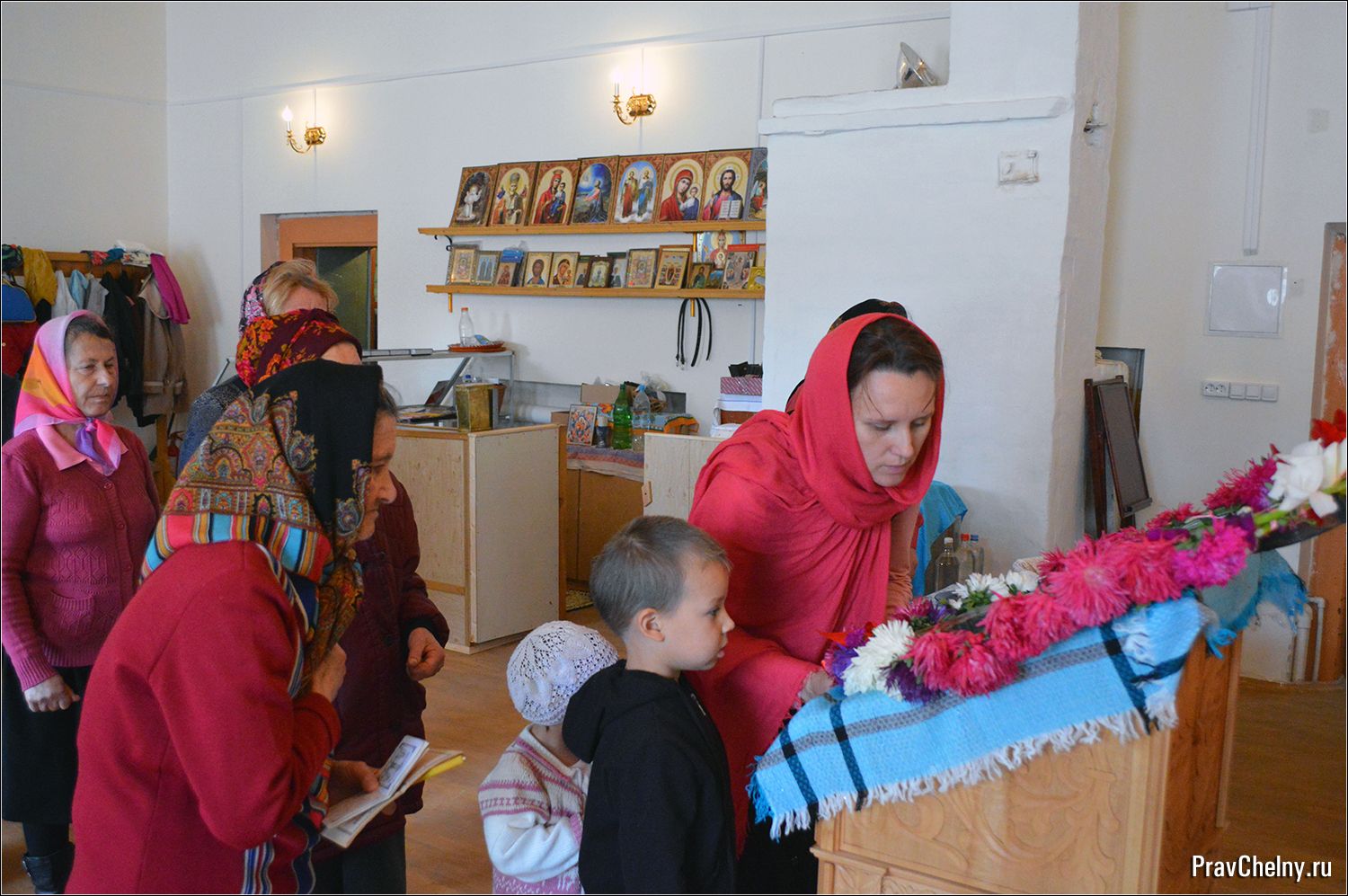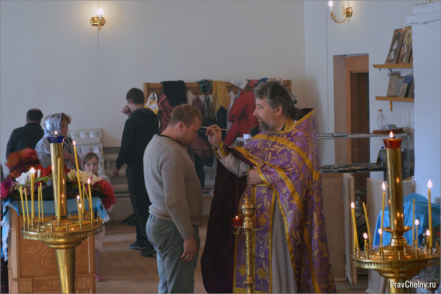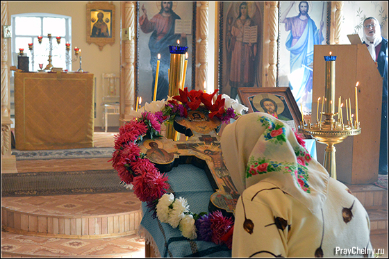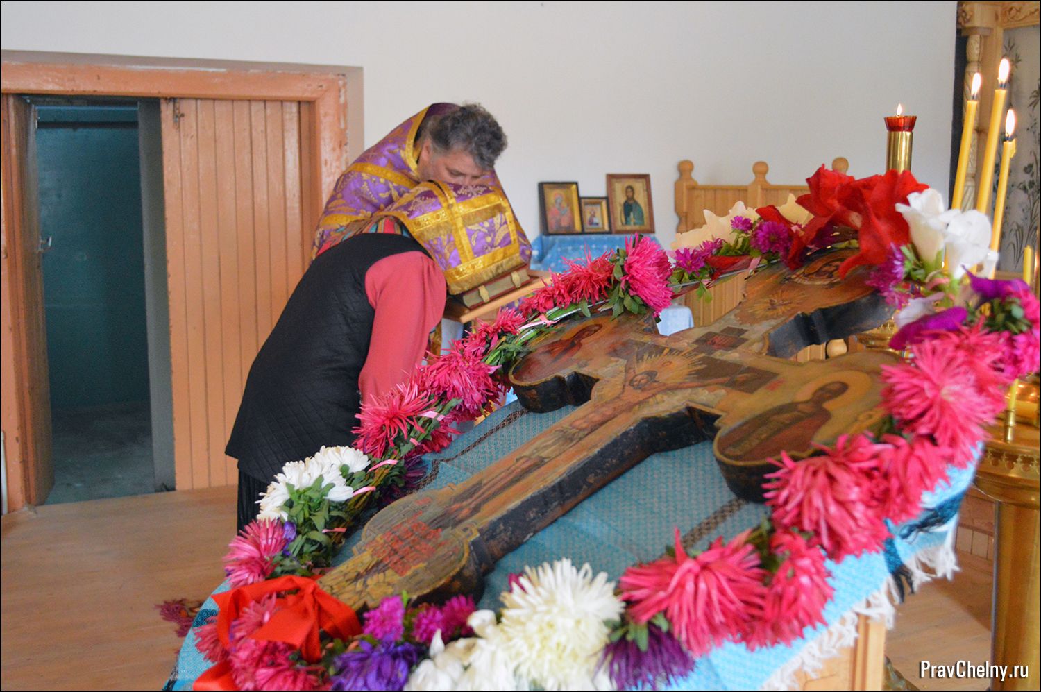 Праздник Крестовоздвижения имеет ряд отличительных черт, присущих только дню памяти Креста и центральным событием утрени праздника было вынесение большого храмового креста, богато украшенного цветами. Священнослужители вместе с хором и прихожанами спели величание празднику, поклонились Честному и Животворящему Кресту Господню. «Кресту Твоему покланяемся Владыка, и святое воскресение твое славим» — разносилось песнопение по храму. По окончании утрени в храме была отслужена Божественная литургия, во время которой все желающие причастились Светлых Христовых Тайн. После праздничного молебна иерей Евгений сказал: