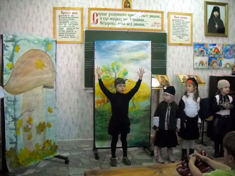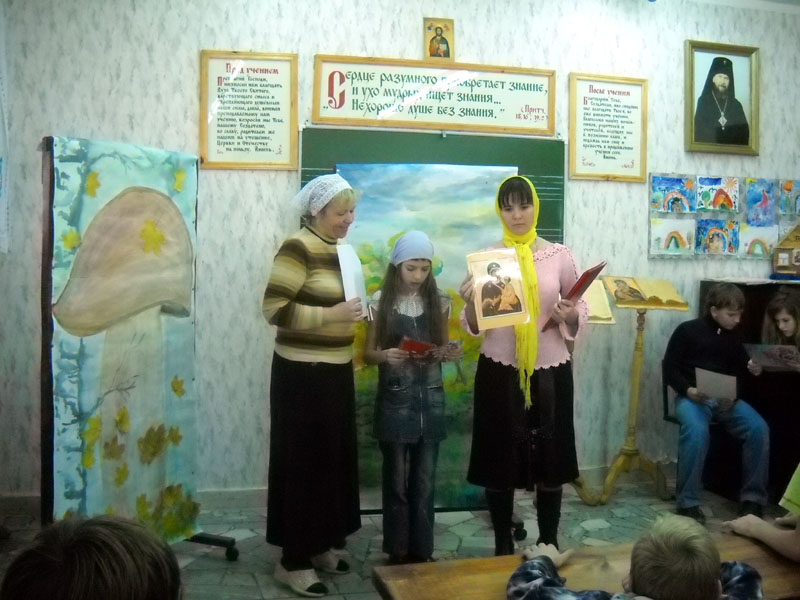 В воскресной школе Свято-Вознесенского собора прошел детский утренник посвященный празднику Покрова Пресвятой Богородицы. Воспитатели и дети готовили это представление своими силами с целью поздравить всех с великим праздником. Дети играли представление дважды, сначала на уроке, как часть учебного процесса, чтобы лучше запомнить значение и смысл праздника. Затем после окончания учебного дня представление показали еще раз для родителей и прихожан храма. Воскресное представление окончилось общим чаепитием.