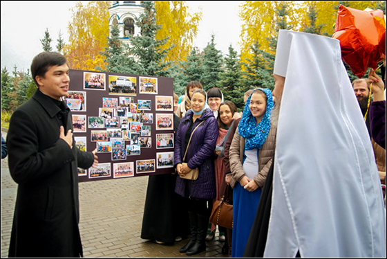 ― Лично я был очень тронут, когда увидел итоговый вариант коллажа, над оформлением которого в течение нескольких дней трудились ребята из разных городов Татарстана, ― сказал студент второго курса КазДС Михаил Максимов. ― На холсте были представлены фотографии, присланные из разных уголков нашей Родины. Это больше, чем фото, это живые люди, которые молитвенно в тот момент были с нами. Мы все вместе обдумывали поздравление нашего дорогого и любимого владыки, все очень хотели порадовать его. По-моему, у нас все получилось. Владыке было очень приятно видеть всех нас. У него были такие счастливые глаза! Таким образом, радость служения Божественной литургии в этот торжественный день продолжилась и после богослужения.