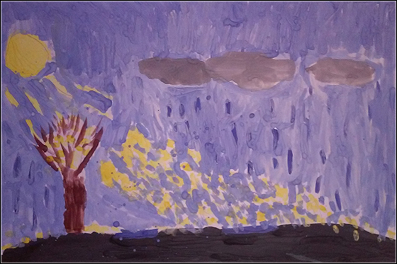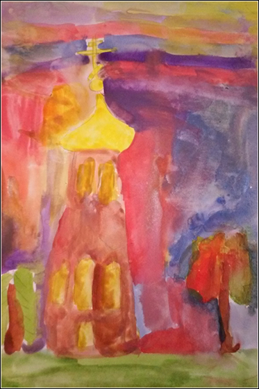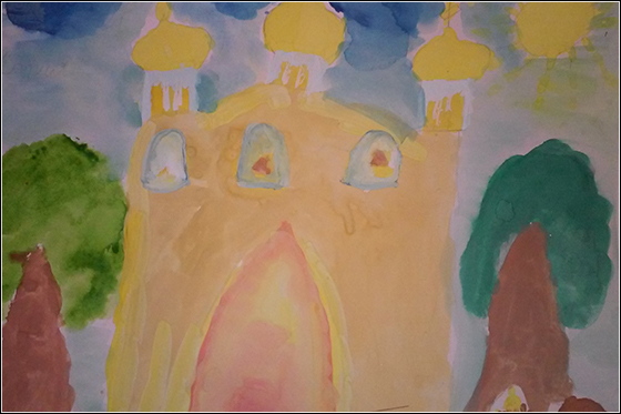 В воскресенье, 12 октября, ребята после общего причастия приступили к работе. Как раз в данное время воспитанники воскресной школы по программе проходят тему «Храм — Дом Божий», где они прошли внешнее устройство храма, — это наверно и послужило тому, что большая часть детей выбрала тему «Любимый храм», а две девочки нарисовали работы на тему «Красота родной природы». Все рисунки выполнены гуашью.