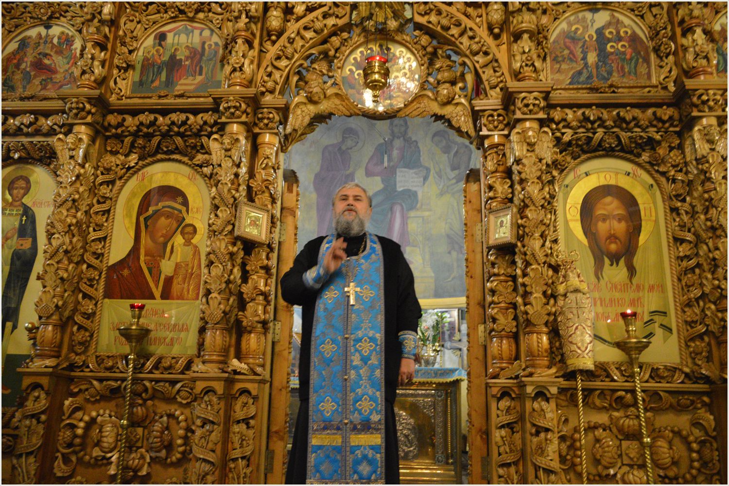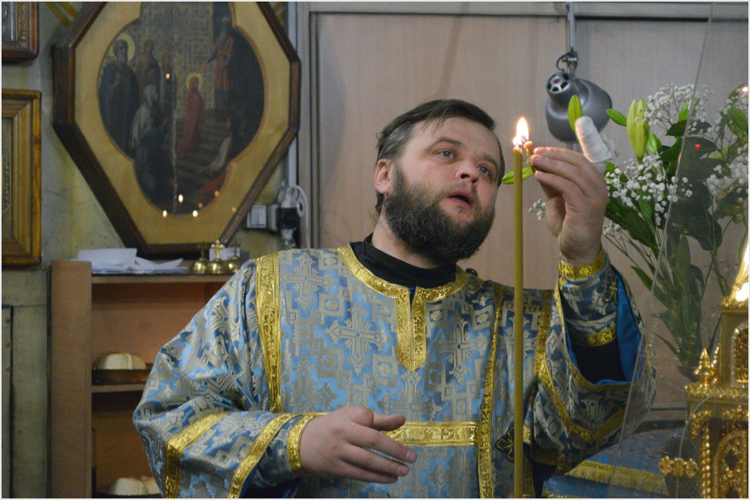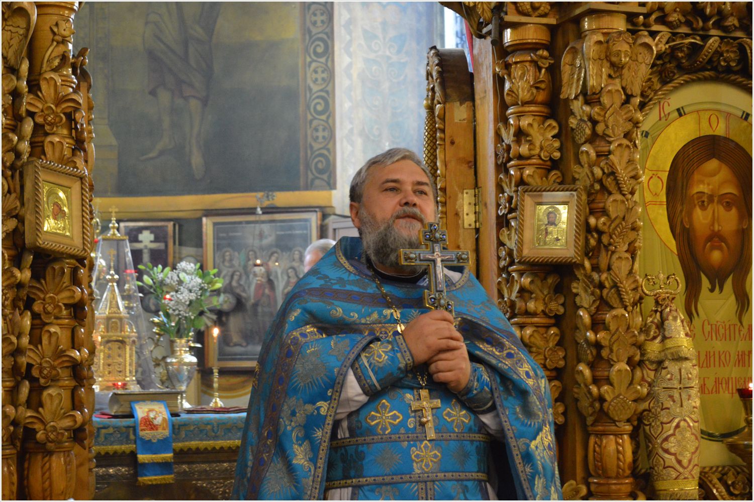 Батюшка поздравил верующих с праздником и обратился словом проповеди, в которой рассказал об истории праздника, о том значении, какое возымела Дева Мария в судьбе мира: