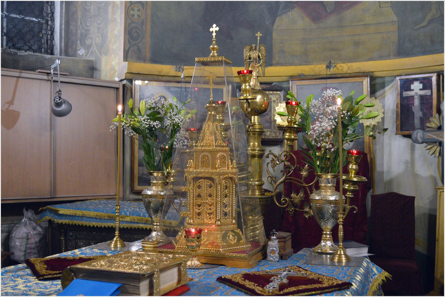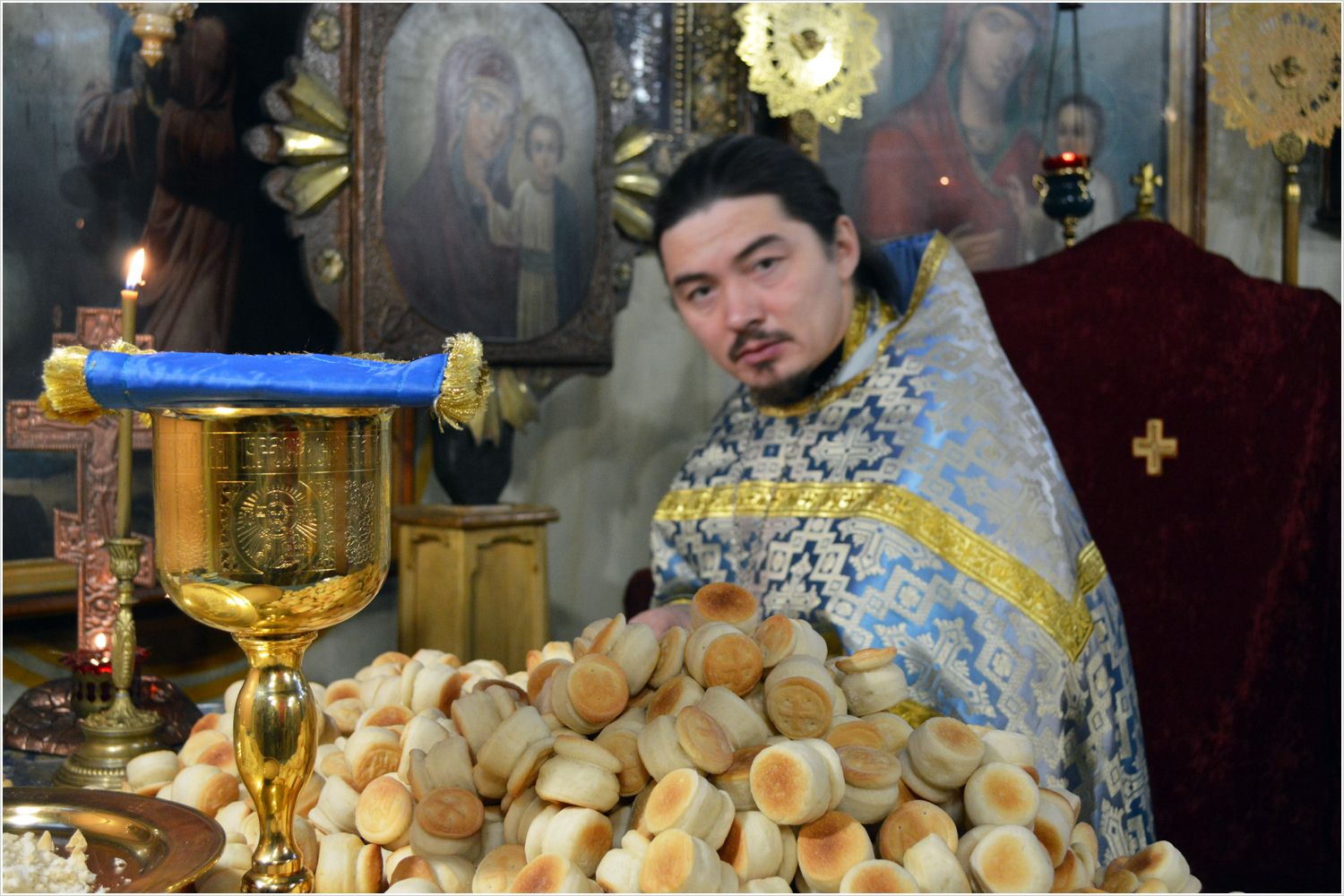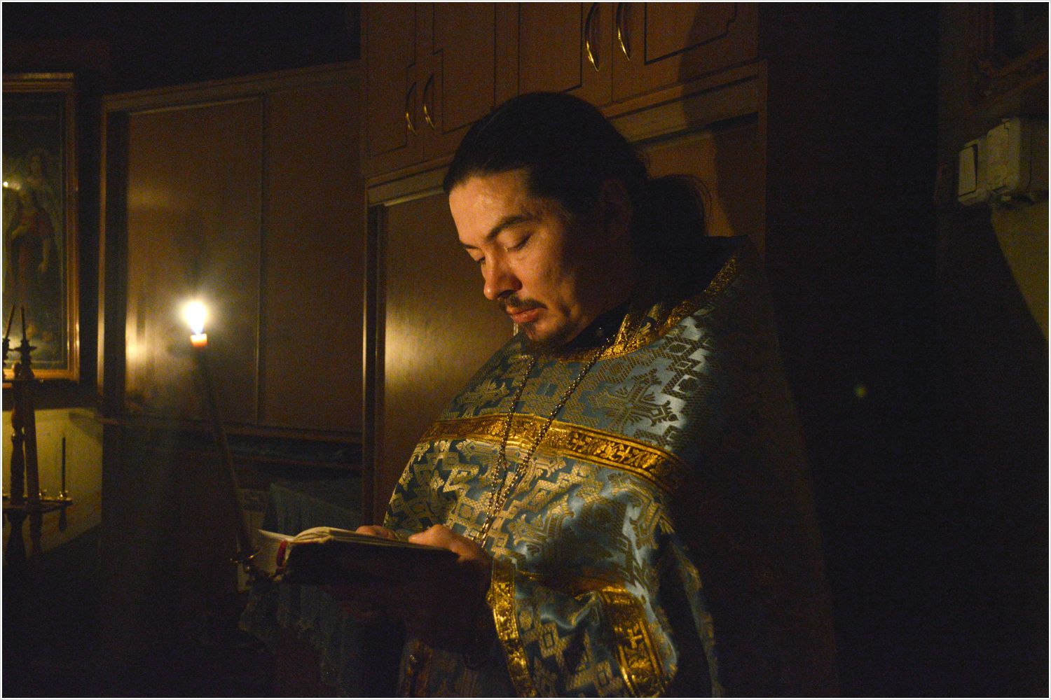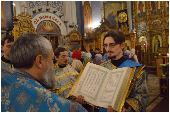 Батюшка поздравил верующих с праздником и обратился словом проповеди, в которой рассказал об истории праздника, о том значении, какое возымела Дева Мария в судьбе мира: