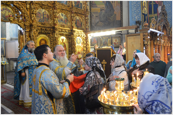 В честь праздника в Свято-Вознесенском Архиерейском соборе состоялись Всенощное бдение и Божественная литургия. Несмотря на будний день, храм был полон верующих, которые пришли воздать положенное Царице Небесной, помолиться и соединиться со Христом в Таинстве Причастия. К Святых Христовым Таинам в этот день приступило более 200 человек. Возглавил богослужения благочинный Закамского региона, настоятель Боровецкой церкви протоиерей Андрей Дубровин.