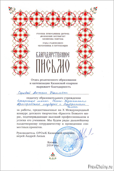 Набережные Челны, 6 декабря — Православное Закамье, Юлия Кокорина. В Казани состоялось награждение победителей конкурса «Красота Божьего мира» на торжестве в честь закрытия регионального этапа XXIII Рождественских чтений. Как уже сообщалось, воспитанница воскресной школы Свято-Вознесенского архиерейского подворья Аня Прокопьева заняла 3 место в своей возрастной категории.