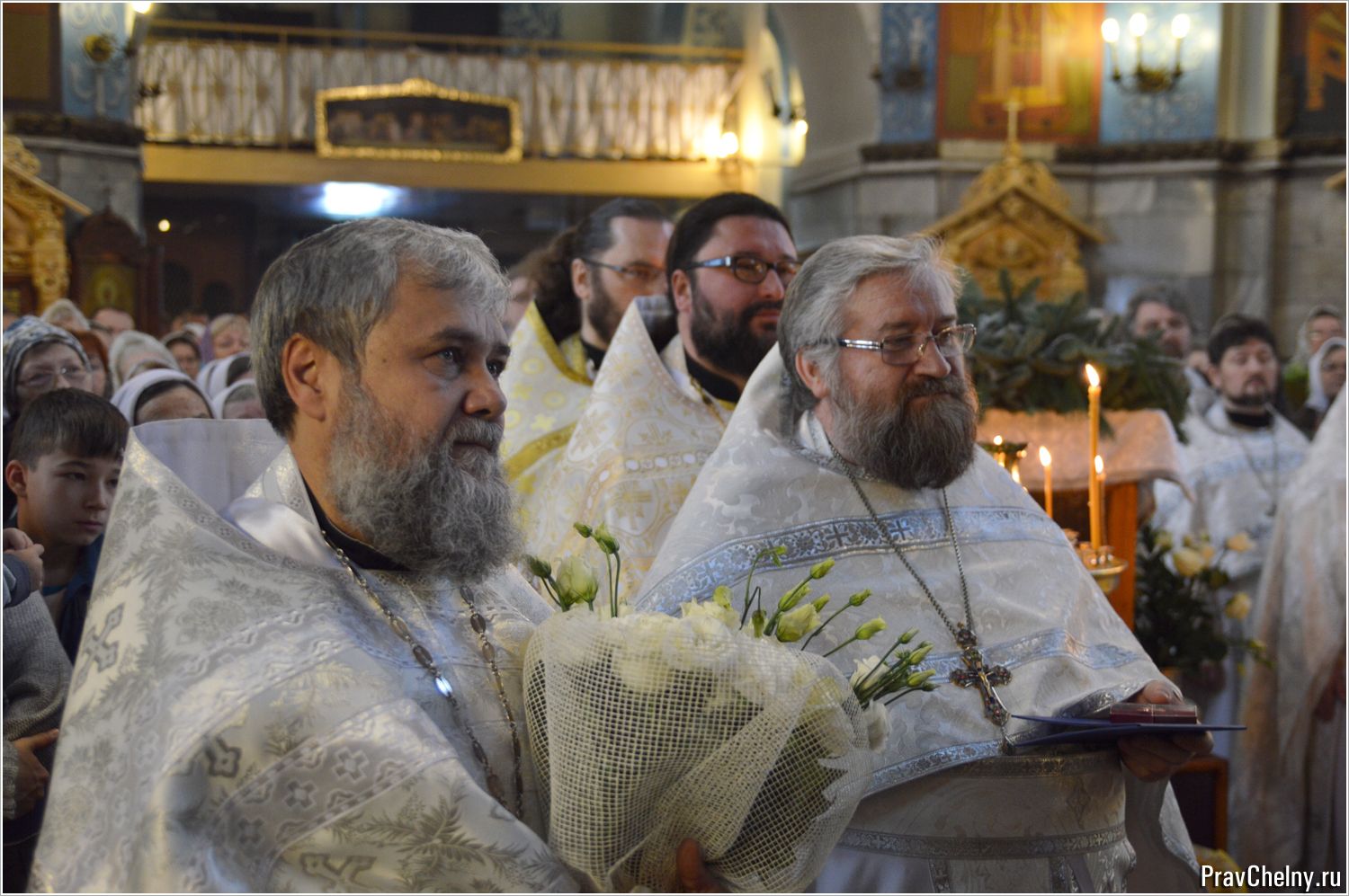 Владыка Анастасий поздравил всех с праздником и тепло поблагодарил верующих, что собрались «прославить Господа, пришедшего спасти каждого из нас и соборно помолиться, чтобы настоящий 2015 год был благословенным, как для каждой семьи, так и для общества, и для Церкви нашей Православной. Нас пугают, что в экономическом плане все плохо, но жизнь продолжается, — мы пережили труднейшие времена, и советские, и хрущевские гонения, и 90-е годы, но с нами Бог и надо радоваться, что Господь от нас не отказывается, а все остальное само по себе приложится — кто думает о Небесном, тому приложится и земное».