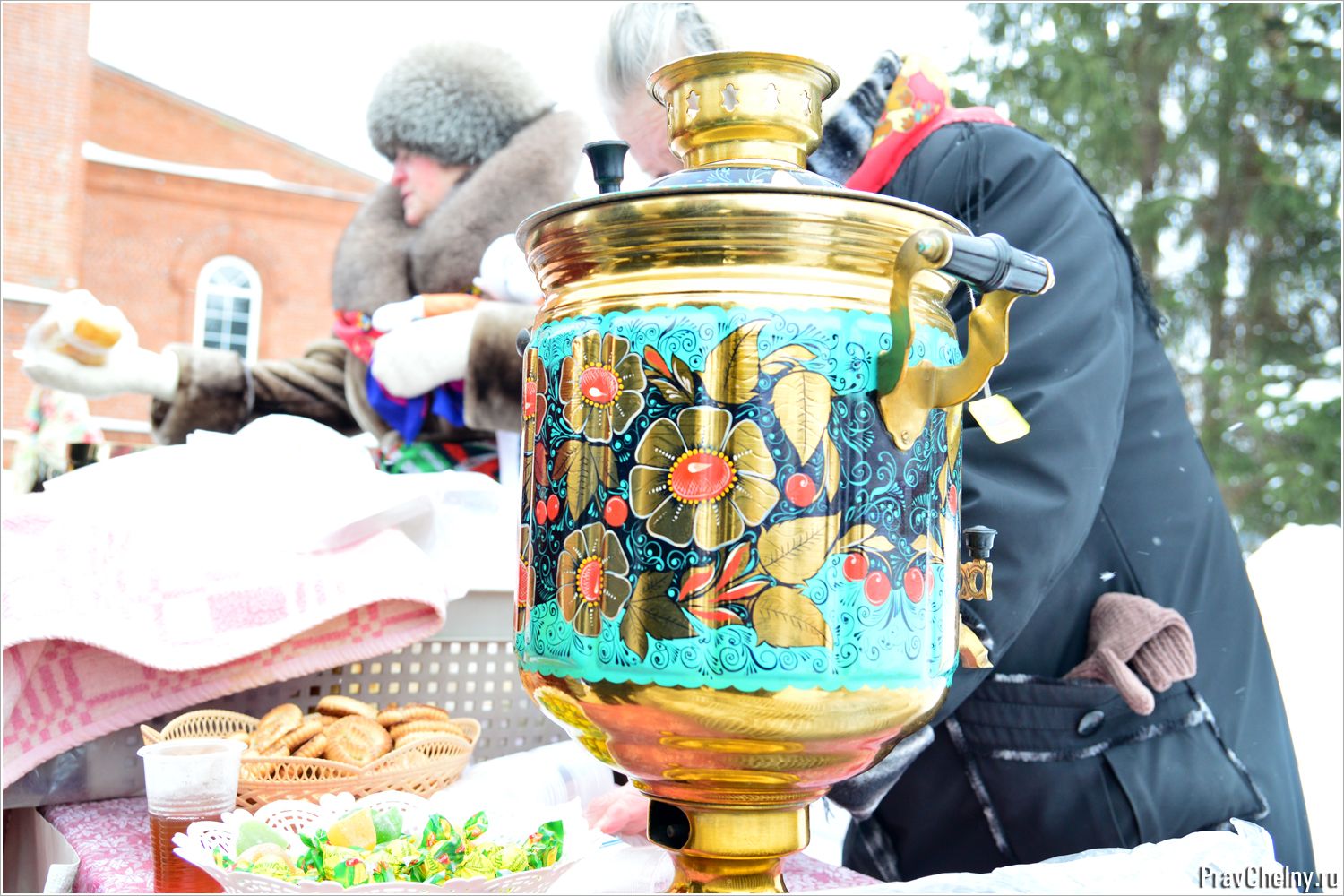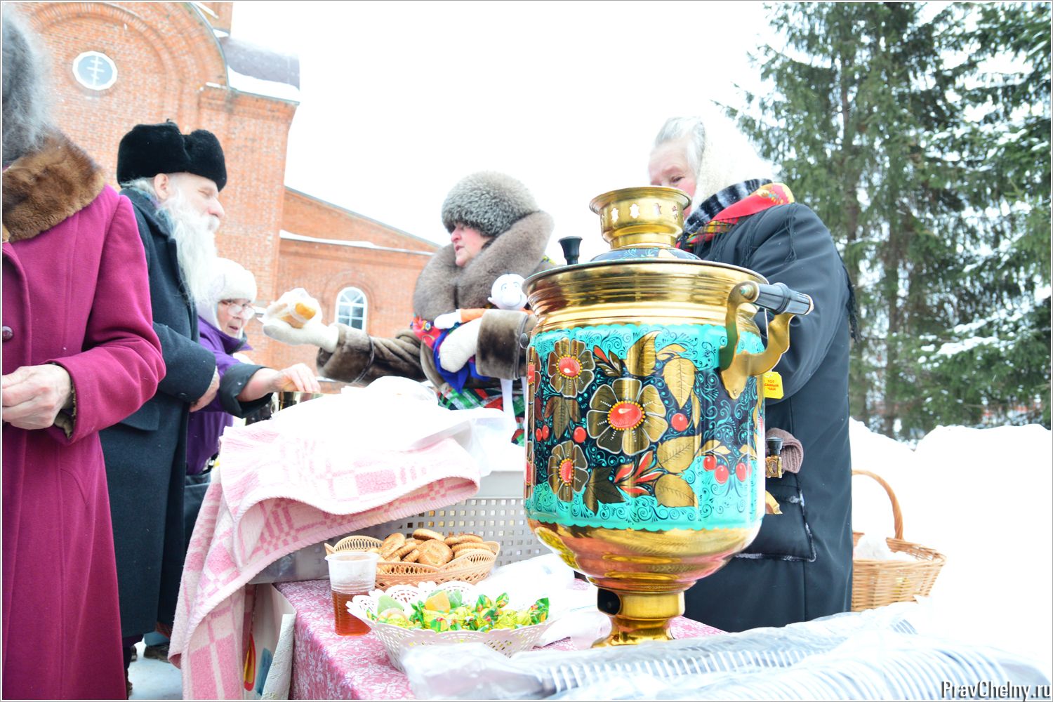 Кроме приобретения за посильное пожертвование традиционных поделок и игрушек, на ярмарке прихожане могли отведать свежеиспечённых булочек с повидлом и горячим чаем из яркого самовара.