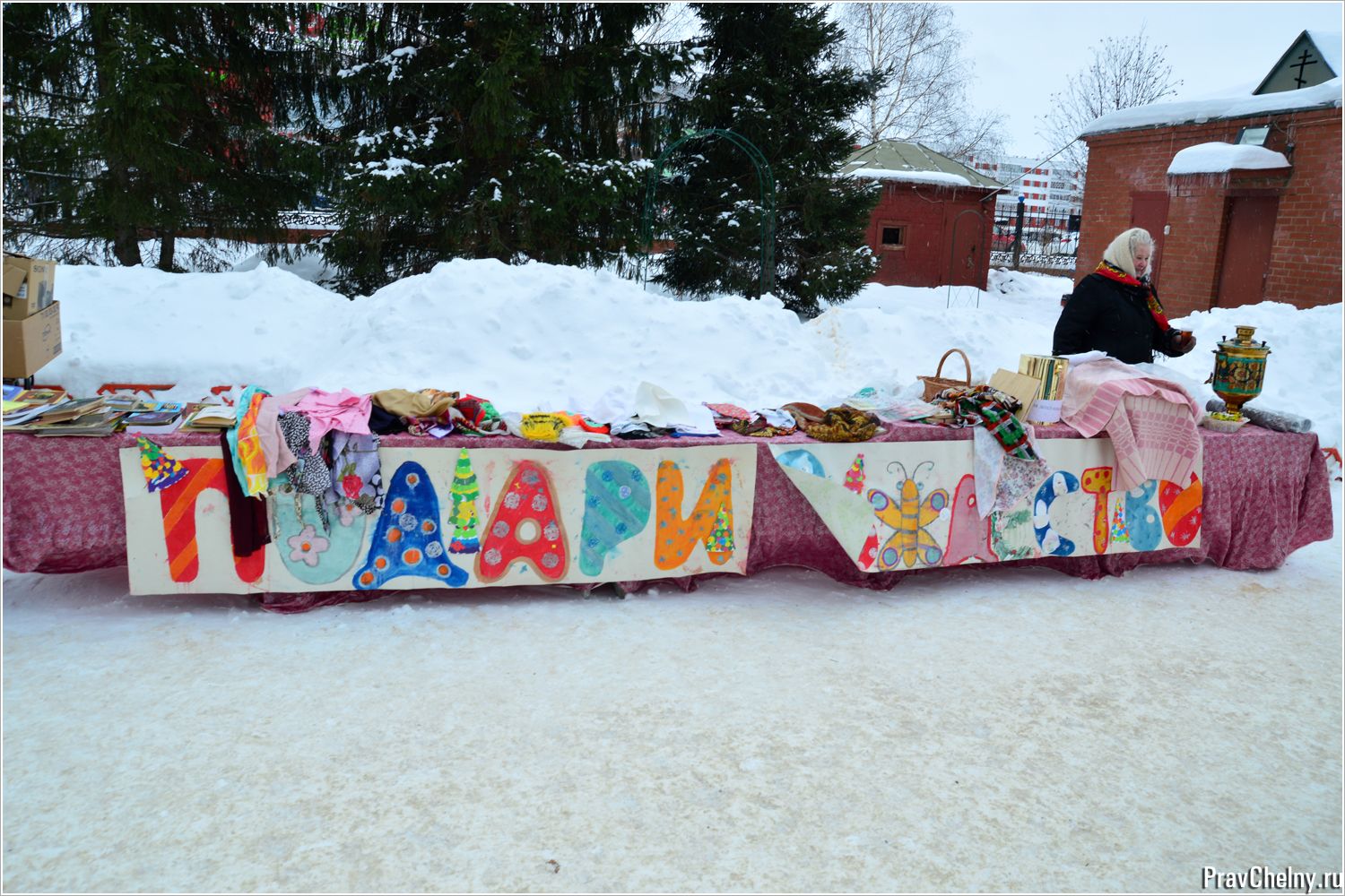 Набережные Челны, 13 января — Православное Закамье, Елена Кораблёва. 7 января во дворе Свято-Вознесенского Архиерейского подворья в рамках акции «Подари Рождество» состоялась очередная благотворительная ярмарка по сбору средств для многодетных семей, воспитывающих более трёх детей или имеющих ребёнка-инвалида. Обратились за помощью в этот раз три таких семьи.