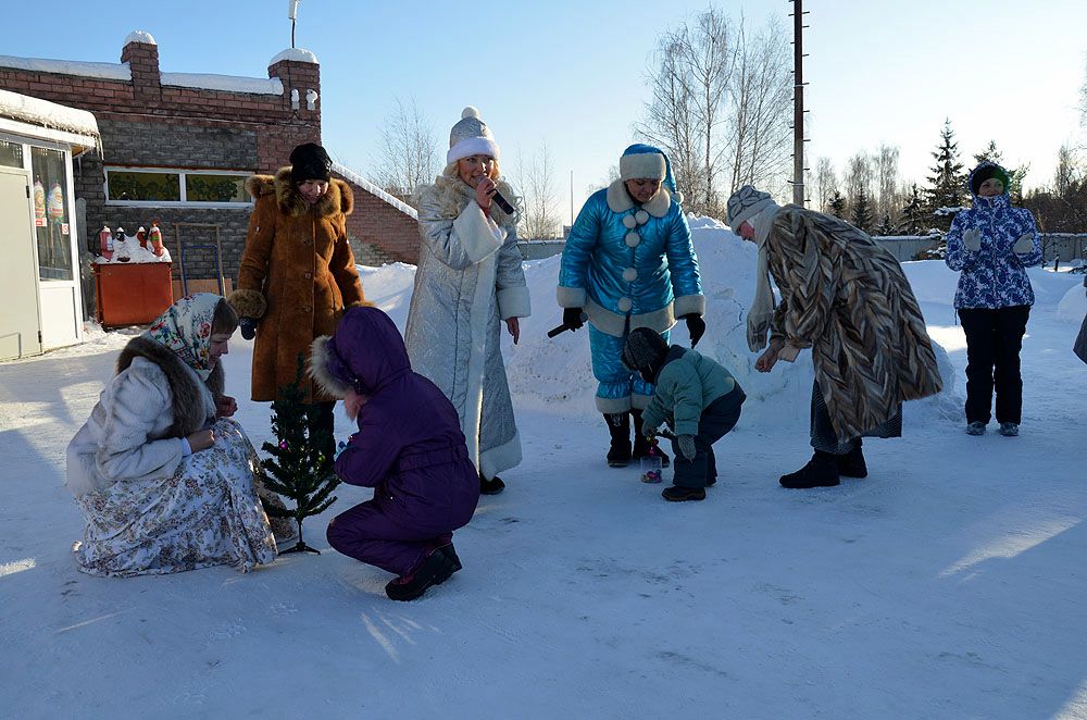 Ребята встретились с Дедом Морозом и Снегурочкой, отгадывали загадки, водили хороводы, участвовали в конкурсах, и, несмотря на тридцатиградусный мороз всем было весело и тепло.