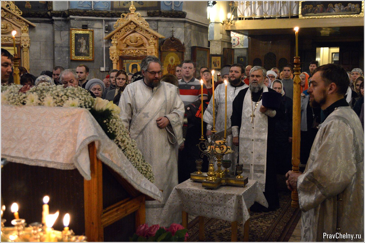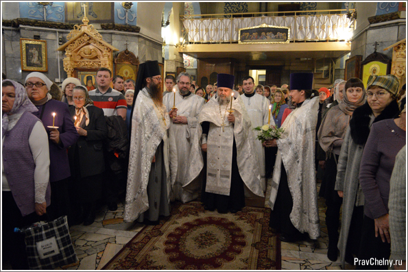 В день Богоявления в Свято-Вознесенском соборе Набережных Челнов при большом стечении горожан была совершена особенно торжественная Литургия святителя Василия Великого. Богослужение в этот день возглавил настоятель собора, благочинный Закамского региона протоиерей Андрей Дубровин в сослужении духовенства прихода. Уже глубокой ночью, по завершении Литургии, как и накануне, был совершён чин Великого освящения воды, после чего верующие с молитвами и праздничным пением Крестным ходом отправились к Боровецкому роднику.