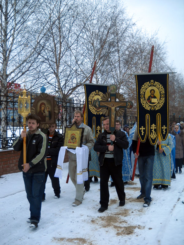 По окончании Литургии прошел праздничный молебен, а сразу после него - крестный ход вокруг храма.