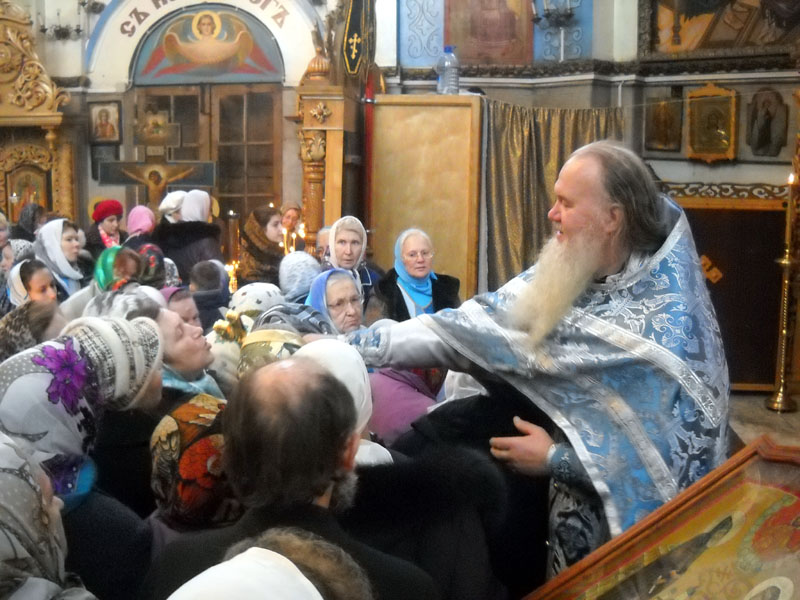 «Нужно всегда помнить, что Пресвятая Богородица – наша заступница и помощница. Враг же рода человеческого на протяжении всей жизни наводит на людей суету, несчастья. Делает так, чтобы люди забывали о молитве. А еще наводит на людей панику. Как можно и сегодня увидеть на примере свиного гриппа – люди паникуют, суетятся, скупают в аптеках все подряд, нужное и не нужное. Но ведь у нас есть Пресвятая Богородица, которая всегда молится Богу за нас», - обратился отец Александр к прихожанам.