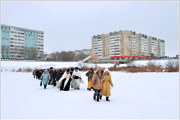 Большую часть пути до иордани участники крестного хода шли по замёрзшей реке, и свежий камский ветер далеко окрест разносил слова праздничных песнопений. Шли мужчины, и женщины — пожилые люди, и молодёжь. Шли глубоко верующие люди и те, кто просто любит добрые традиции своей Родины. Вех призвал и объединил Господь в этот день в крестном ходе.