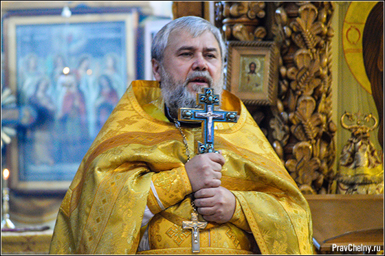 После прочтения Евангелия, благочинный Закамского региона протоиерей Андрей Дубровин обратился к верующим с проповедью: