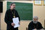 Помощник благочинного по образованию и катехизации, проректор по учебной части школы катехизаторов иерей Георгий Опарин донес до присутствующих призыв Митрополита Анастасия об усилении и углублении катехизации на приходах. Священник сообщил, что ежегодная аттестация воскресных школ должна быть закончена к концу учебного года, а каждый педагог должен защитить программу по своему предмету.